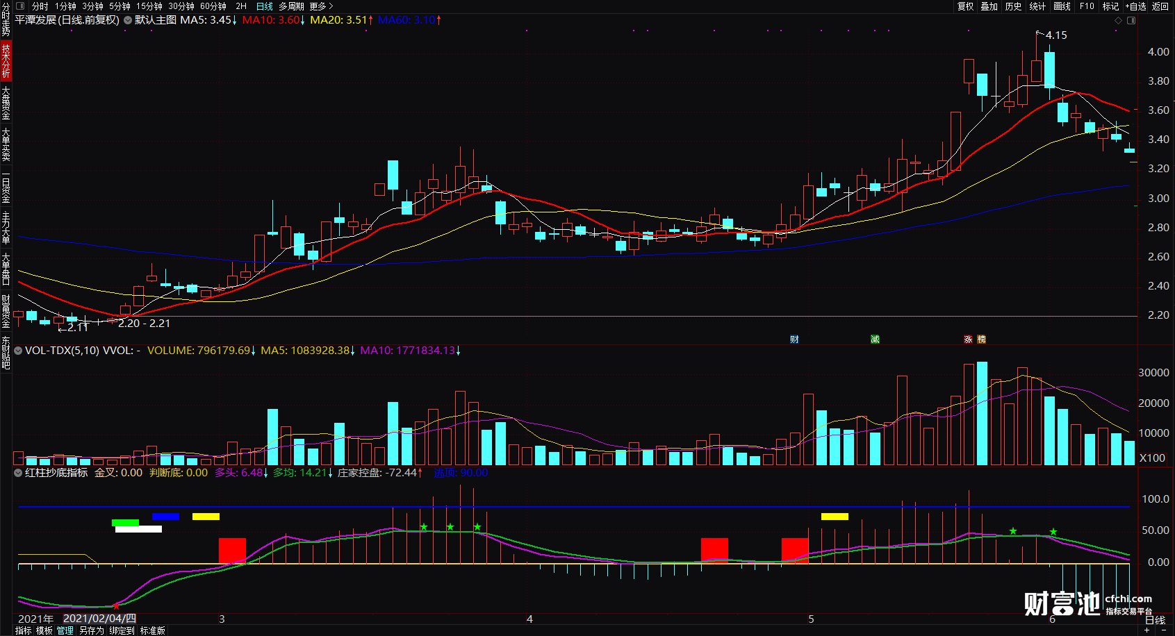 【财富池_量能分析】红粉黄绿四色绝版官方原创核心指,还原个股真实走势(量能判断)