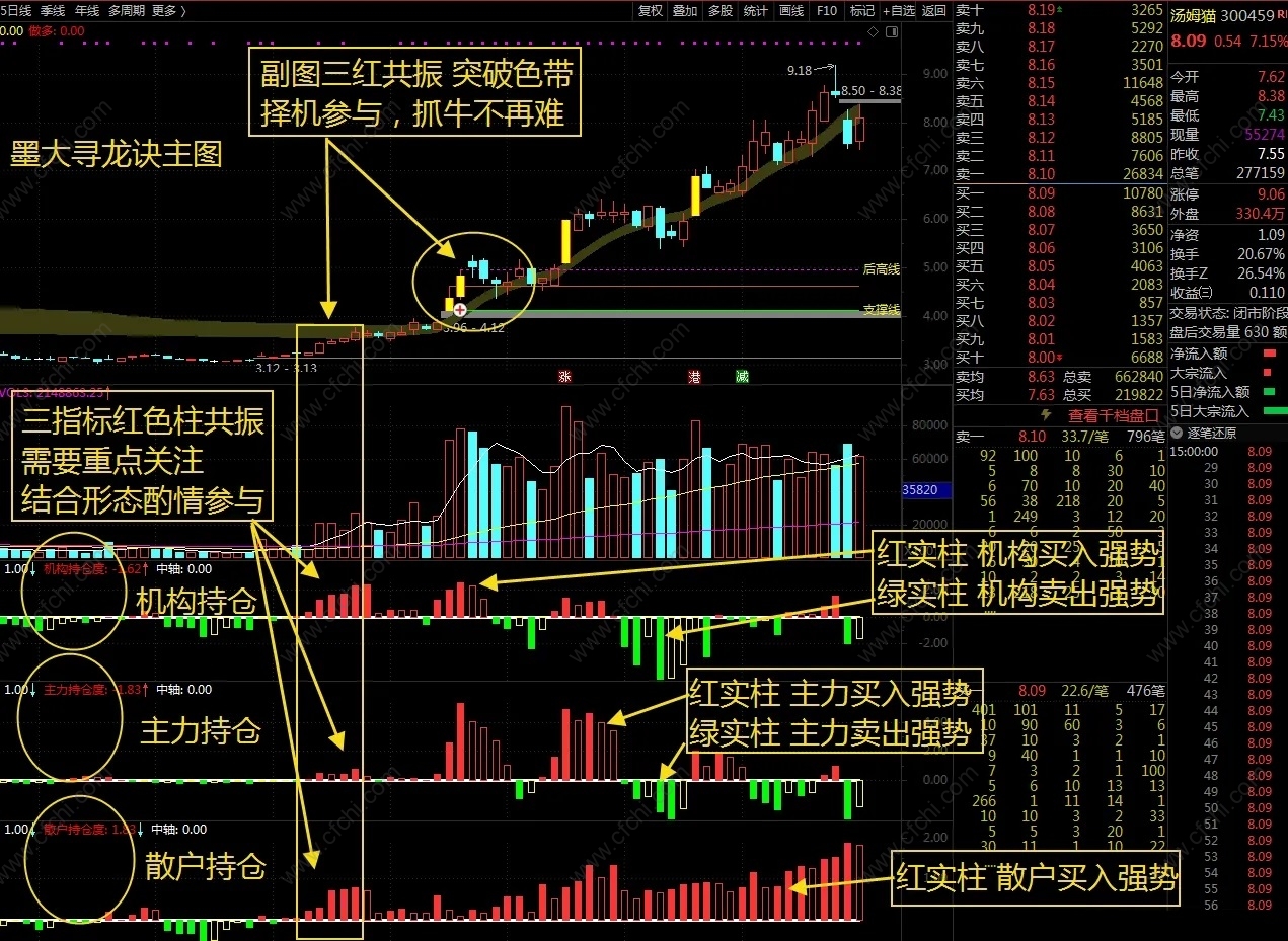 指标为三个通达信副图指标,源码 (需要开通L2数据才能使用)