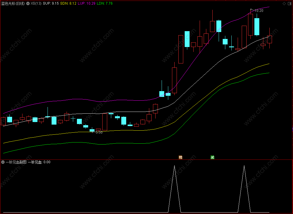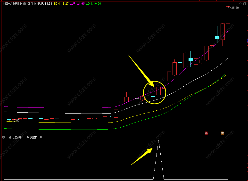 (【通达信】一针见血副图选股指标,上升途中两个连续上影线被阳线吞没,后市大概率继续拉升)