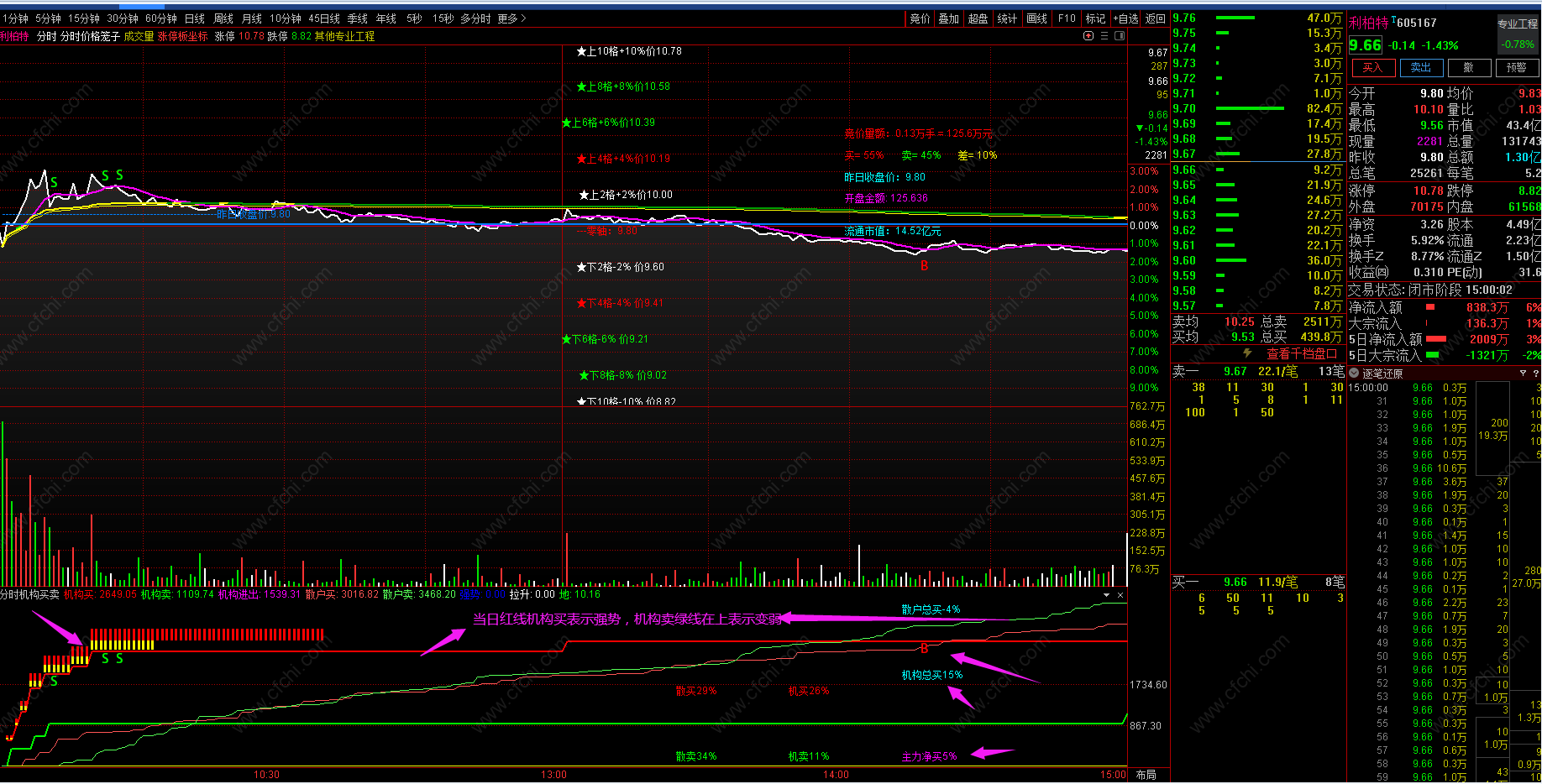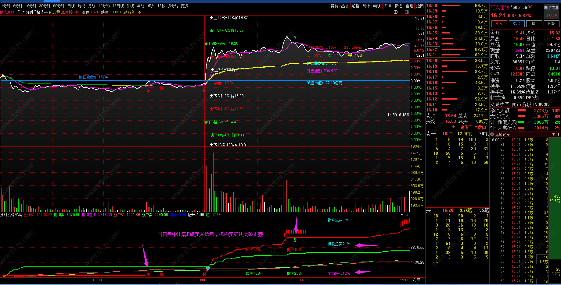 (分时机构买卖(分时副图指标 )根据机构线及B买点,S卖点,方便盘中操作)