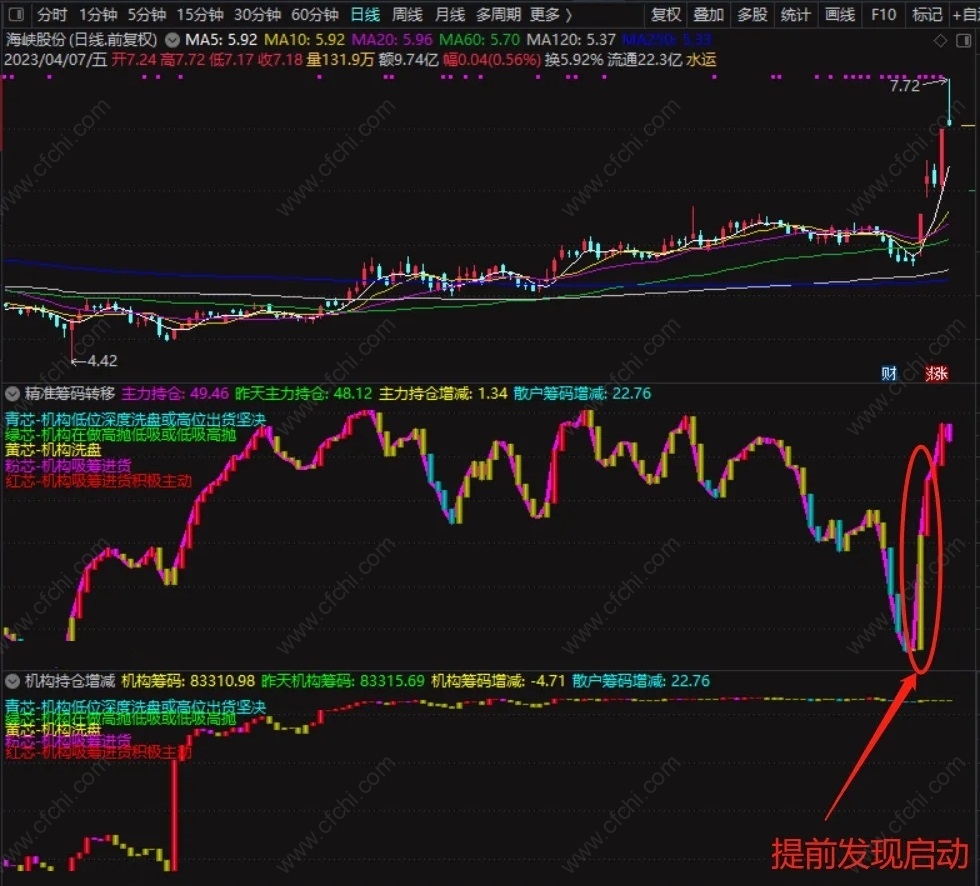 结合之前发布的机构仓位增减副图指标,效果更佳!