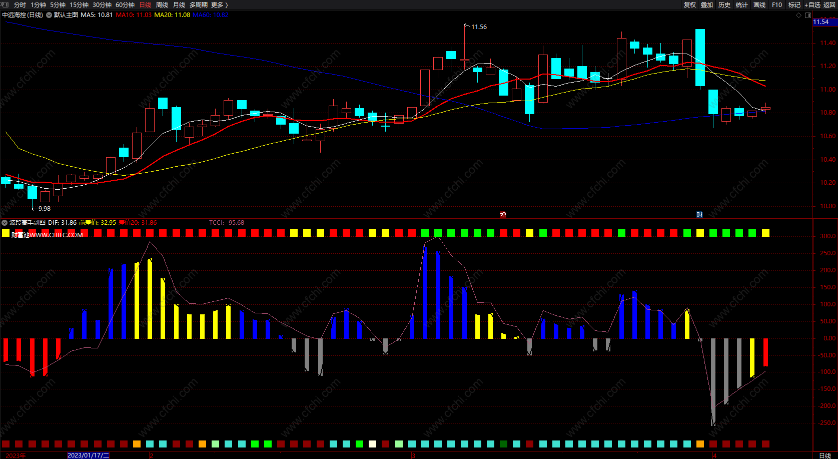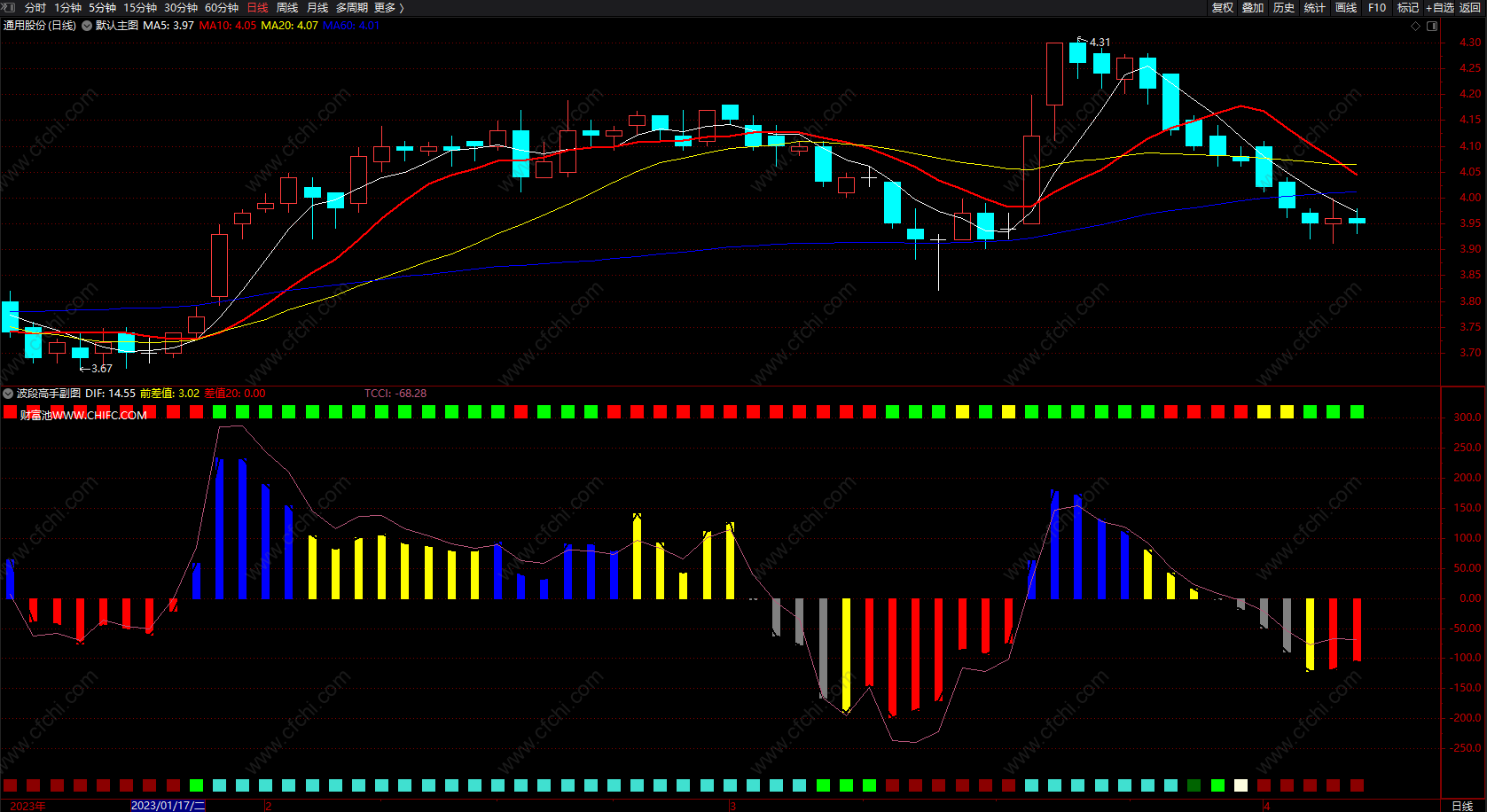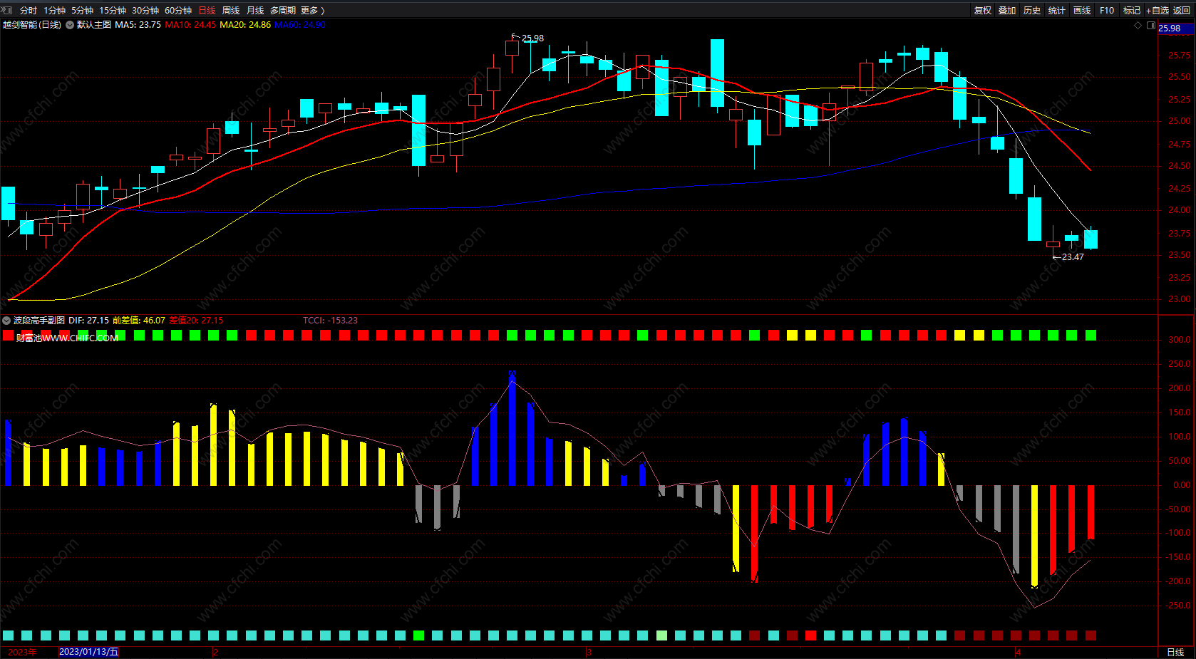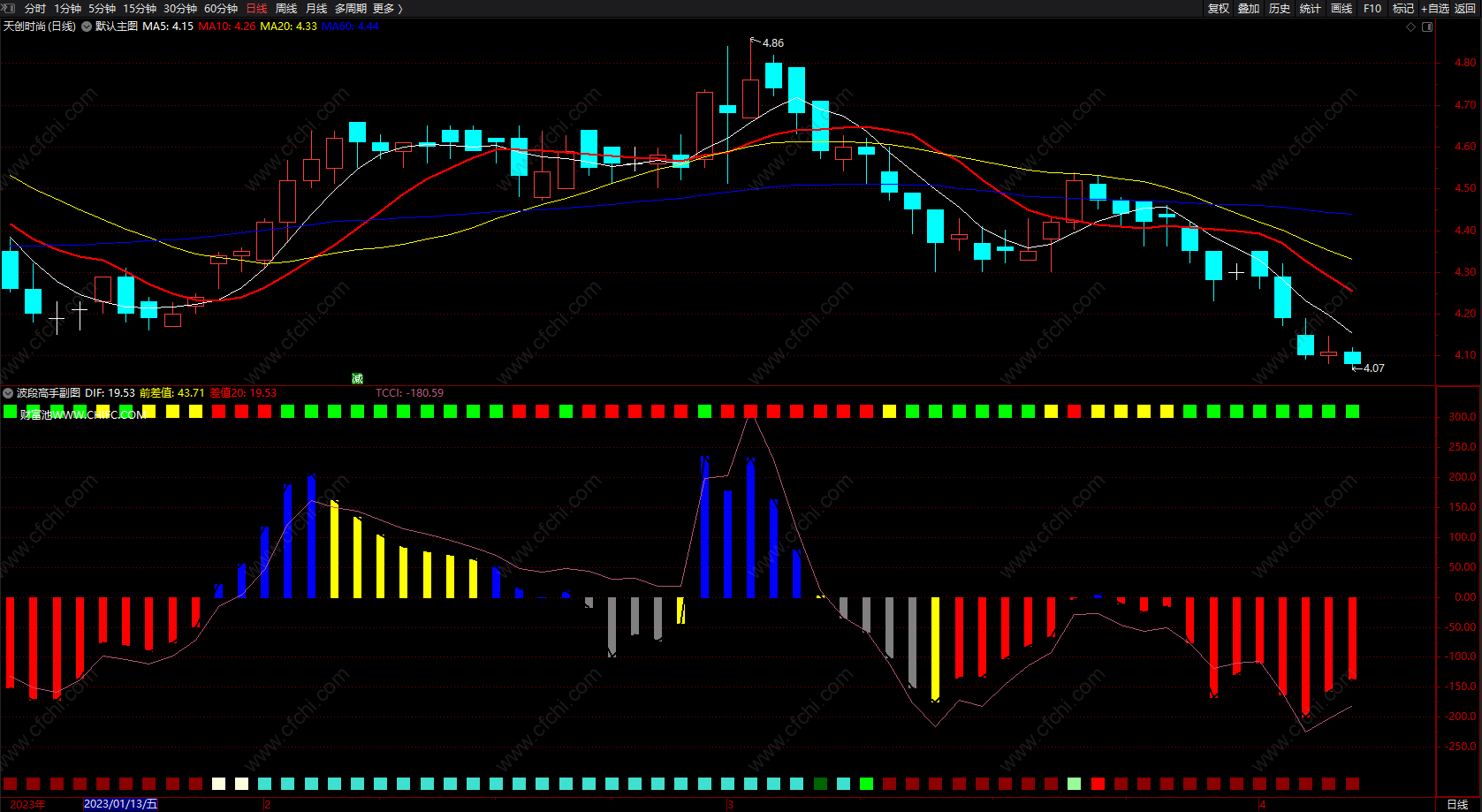 DRAWTEXT_FIX(C>O,0.01,0.01,0,' 财富池WWW.CHIFC.COM'),COLORWHITE;