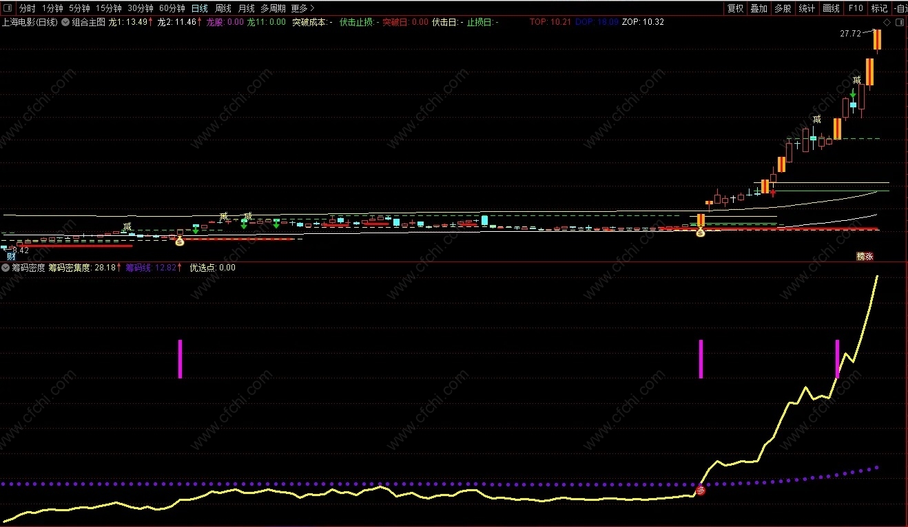 (【通达信】筹码密度副图指标,筹码密集度上穿筹码线做的,源码分享)