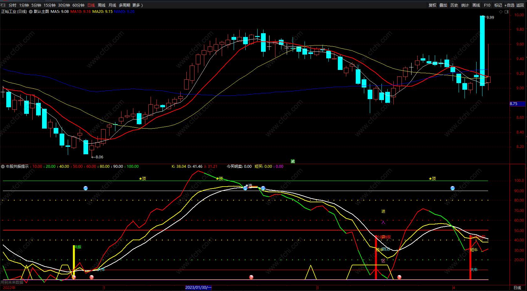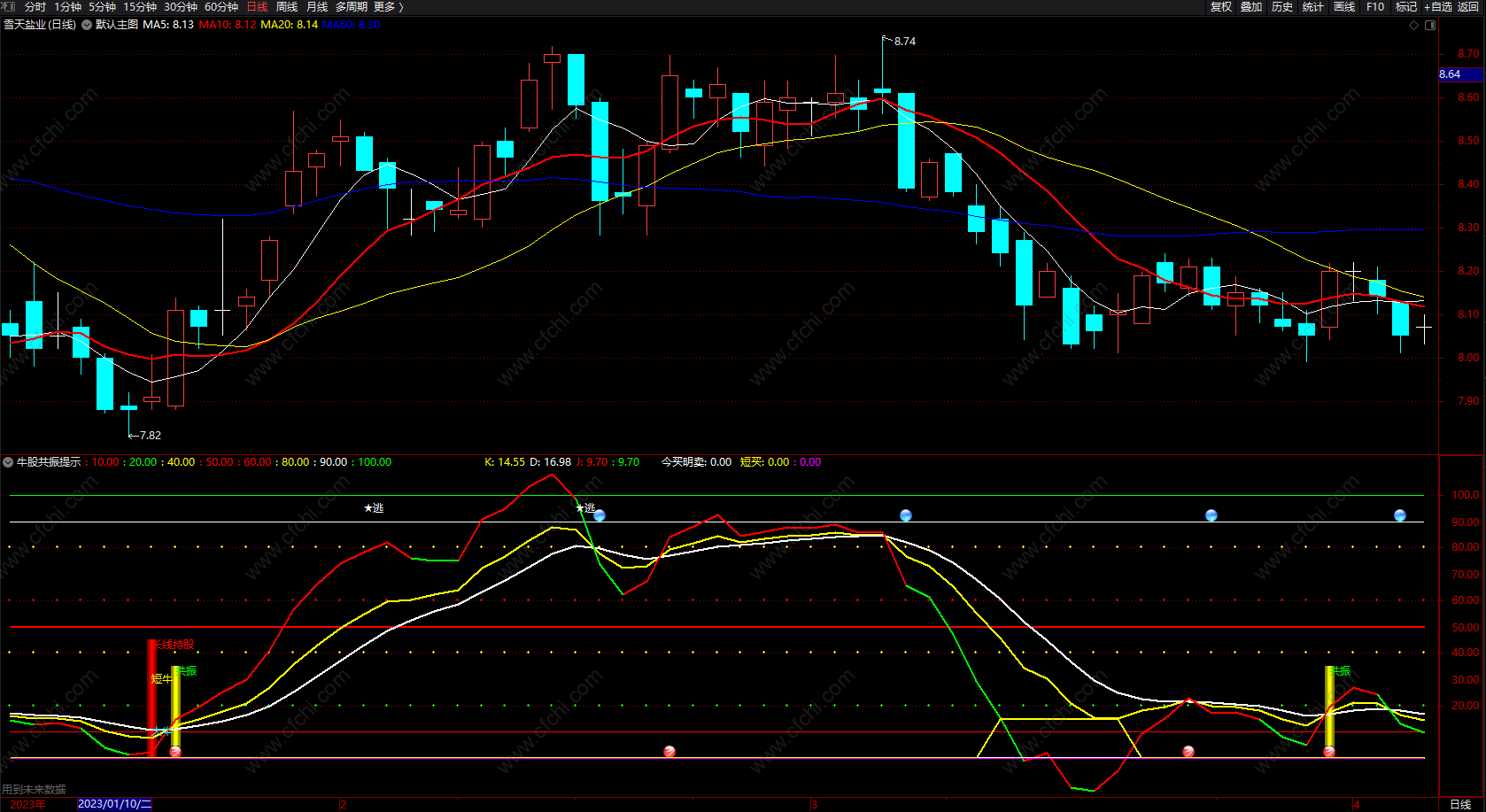 通达信牛股共振提示指标公式 简单实用精准抄底逃顶公式 副图 源码