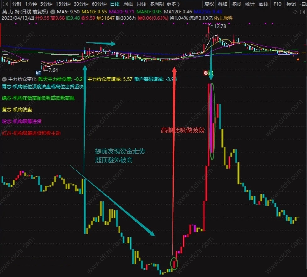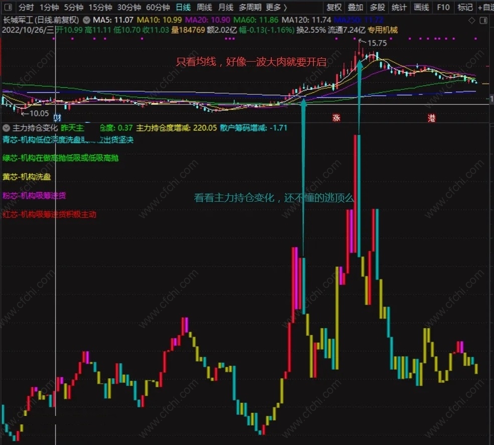 这个指标的精妙之处就是能够提前发现股价的运行方向,一些从均线K线看不出的走势,从这个指标都可以看出来。无论是高抛低吸、提前逃顶避坑、还是追涨打板,都是很好的辅助工具。因为走向相对比较明显,避免了其他机构持仓变化的不足。