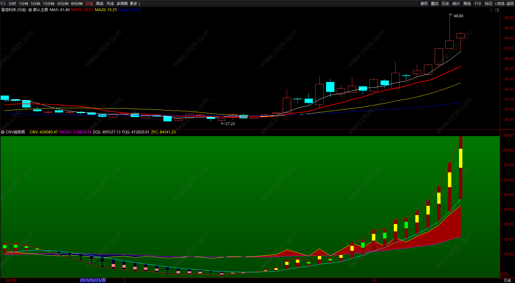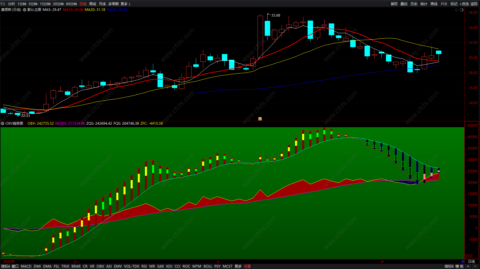 OBV趋势图 通达信短线波段带买卖点指标 副图 源码