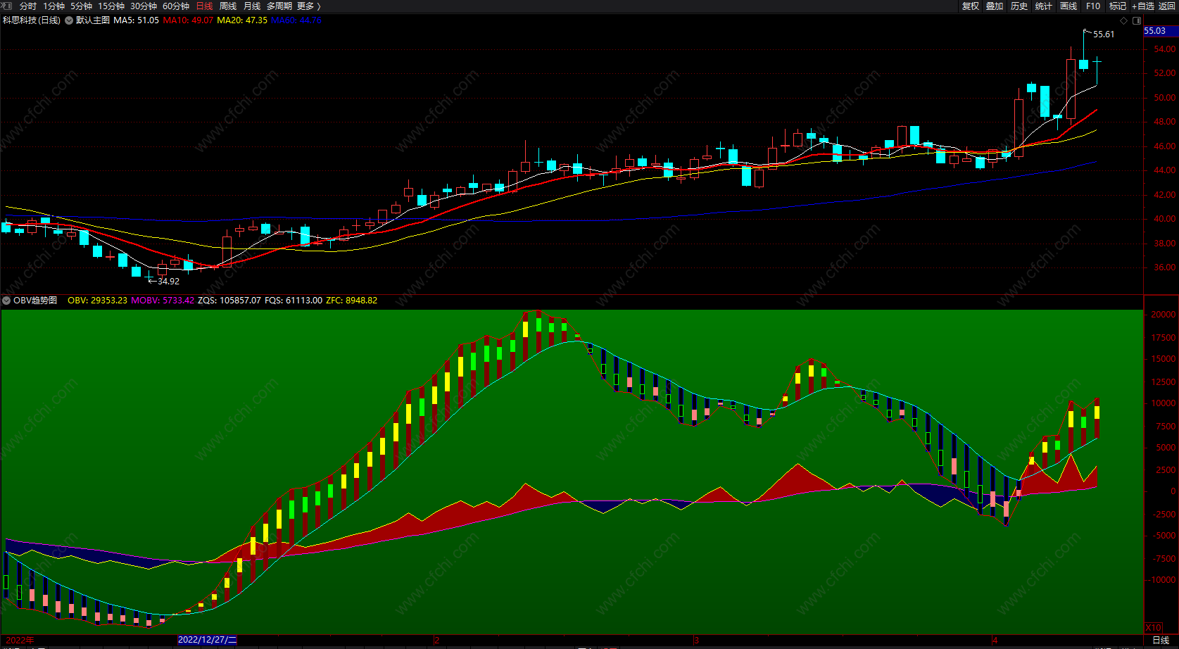(OBV趋势图 通达信短线波段带买卖点指标 副图 源码 )