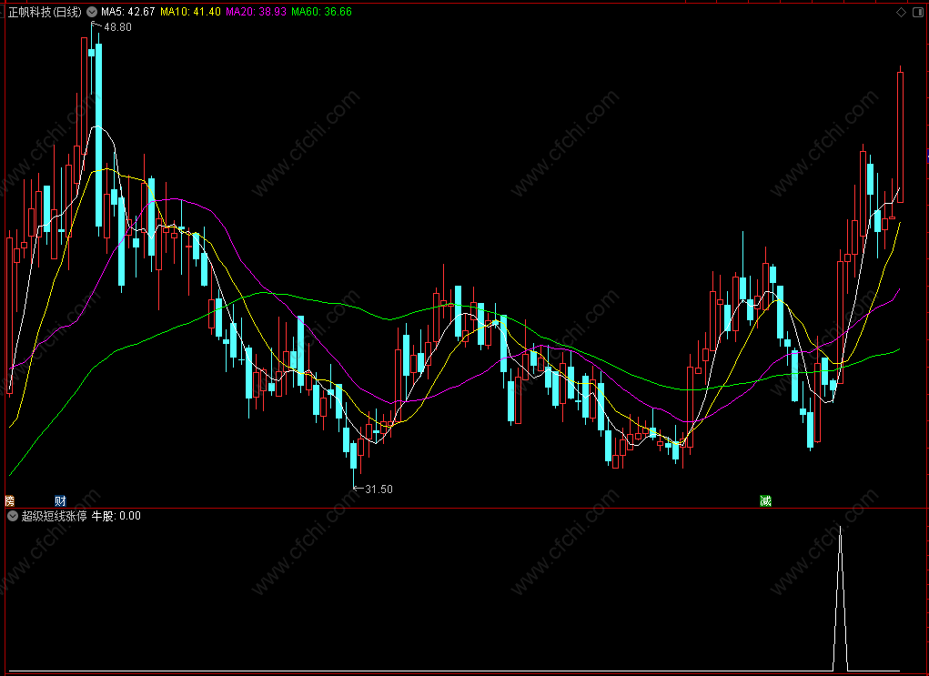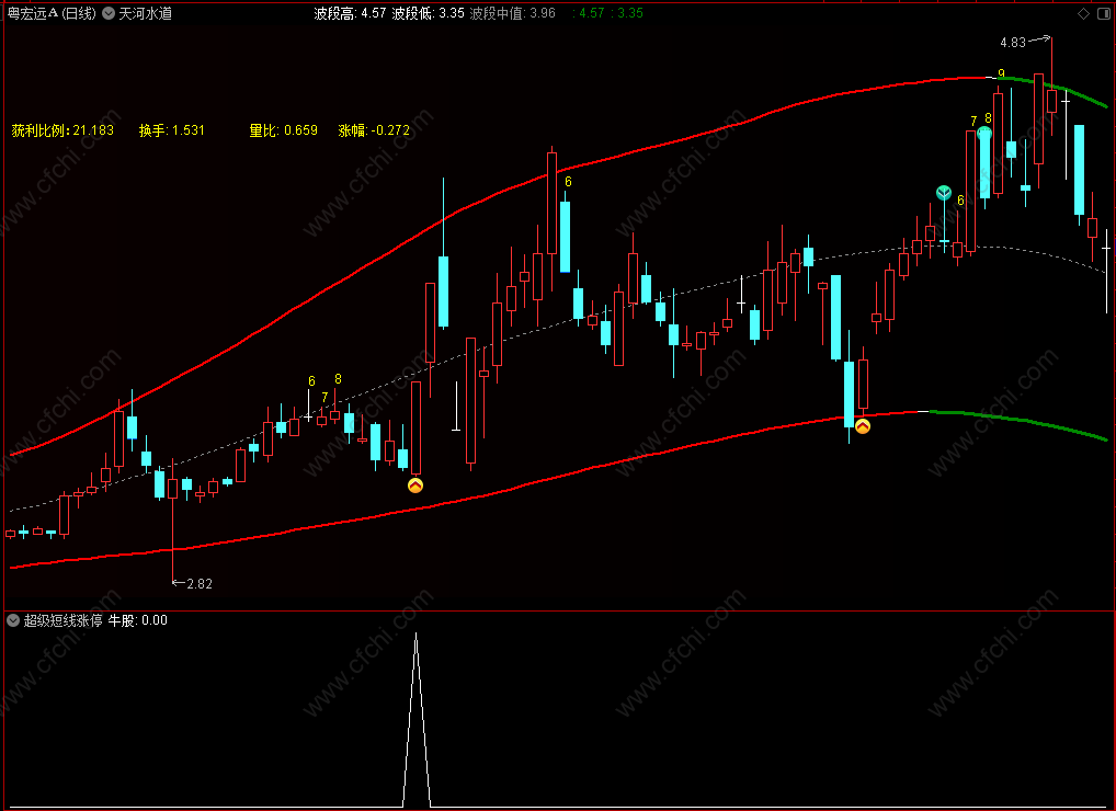 财富池指标公式网(www.cfchi.com)提醒您:指标公式是通过数学逻辑角度编写而来,仅是股票分析环节中的一个辅助工具,对股票选股效率和分析便捷上起到一定的作用,股市是具有不确定性和不可预测性的,请正常对待和使用指标公式!
