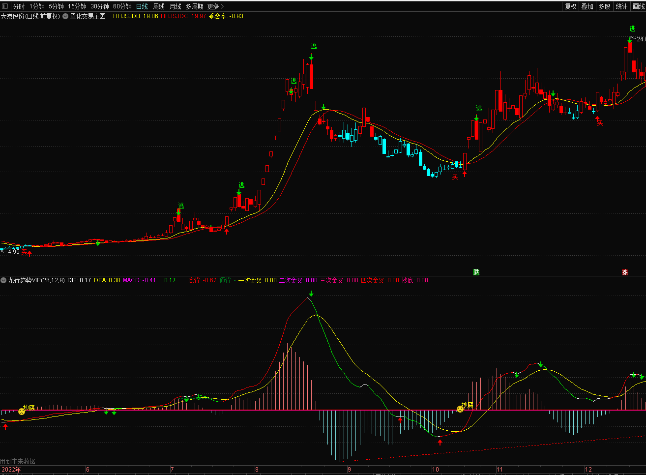 (海底捞月(副图、指标、无未来、不加密、贴图)—探查底部特征,识别入场最佳时机)