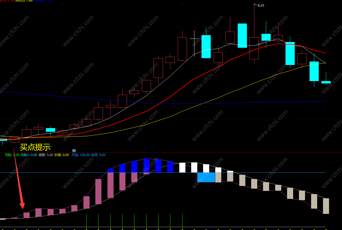 精华版:分时主力吸筹:增加了买入点提示,效果不错。手机电脑都可用。
