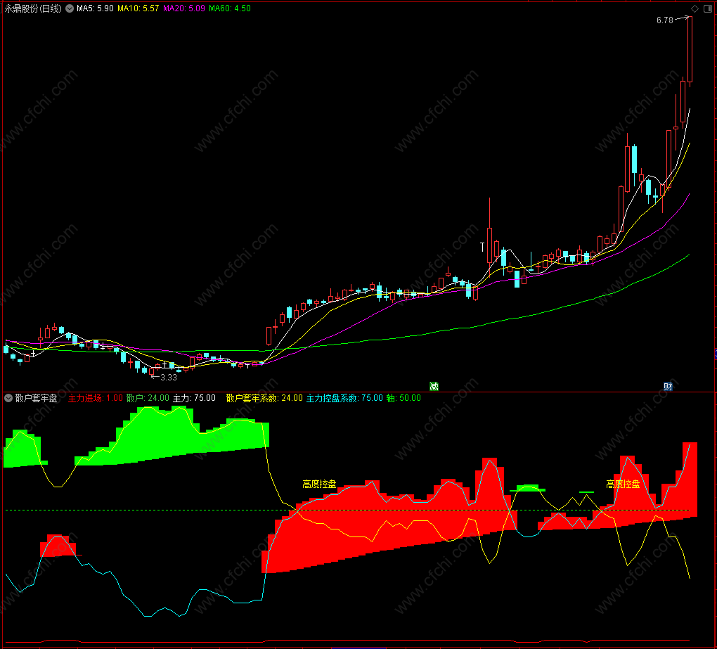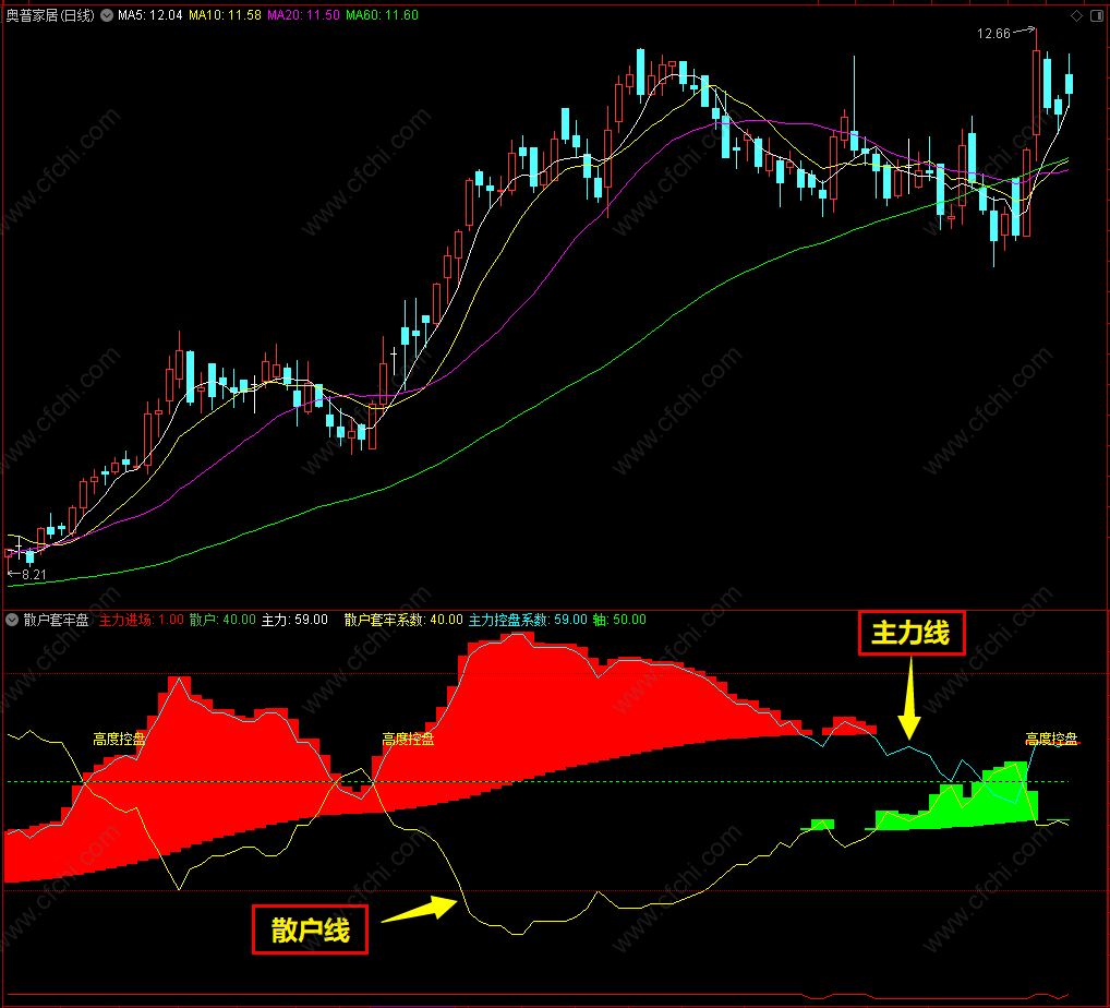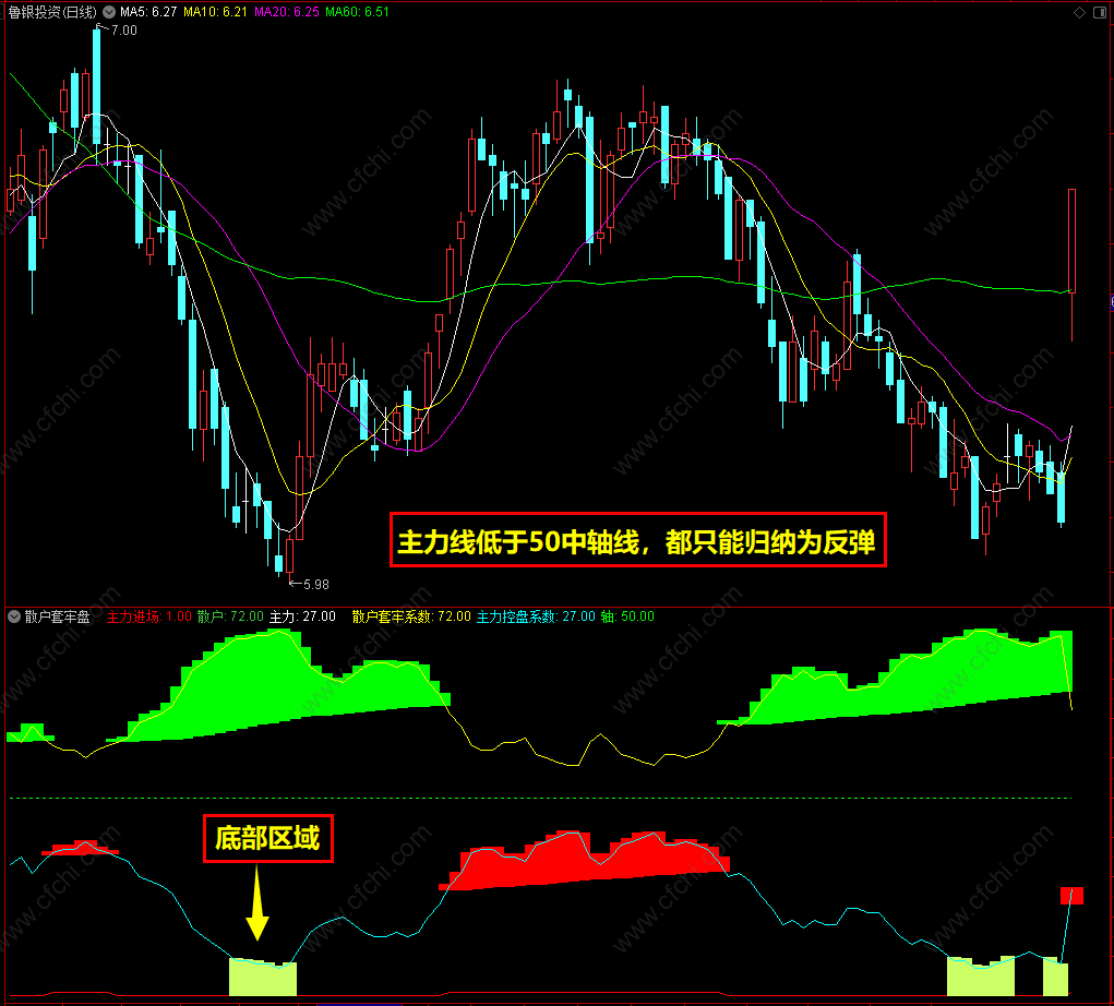 (【散户套牢盘】通达信散户套牢盘副图指标,主力线在黄颜色上方做多,源码分享)