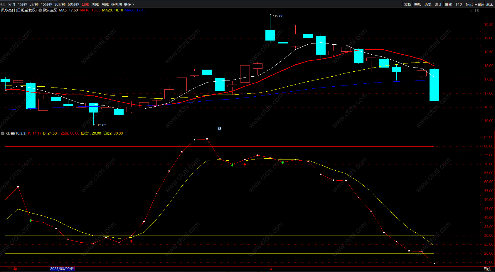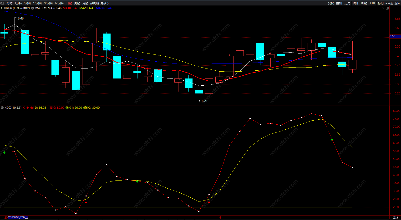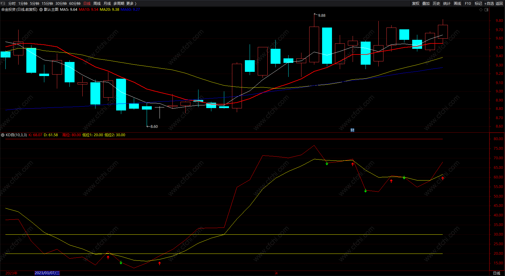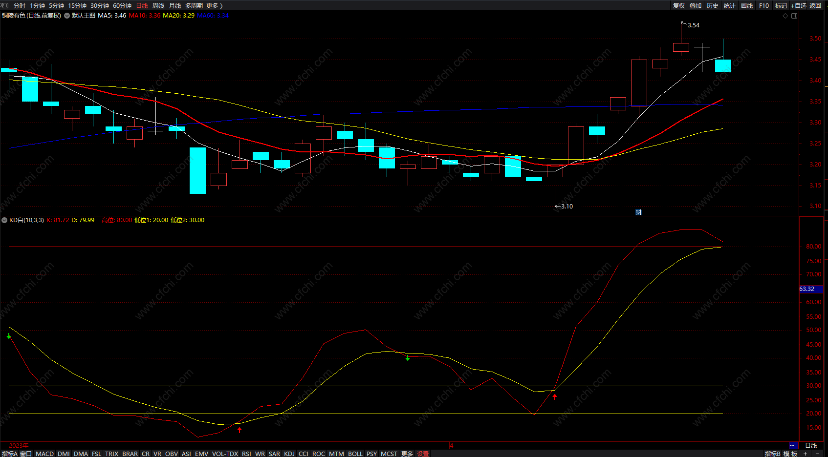 2) 懒人可以在80线上出绿箭头,卖出