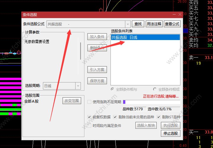 2、使用为股池,也就是盘后或者尾盘等选股,做成股池,这样就是一个共振多头的股池,短线操作可以在股池中选股操作。这样避免一些空头个股