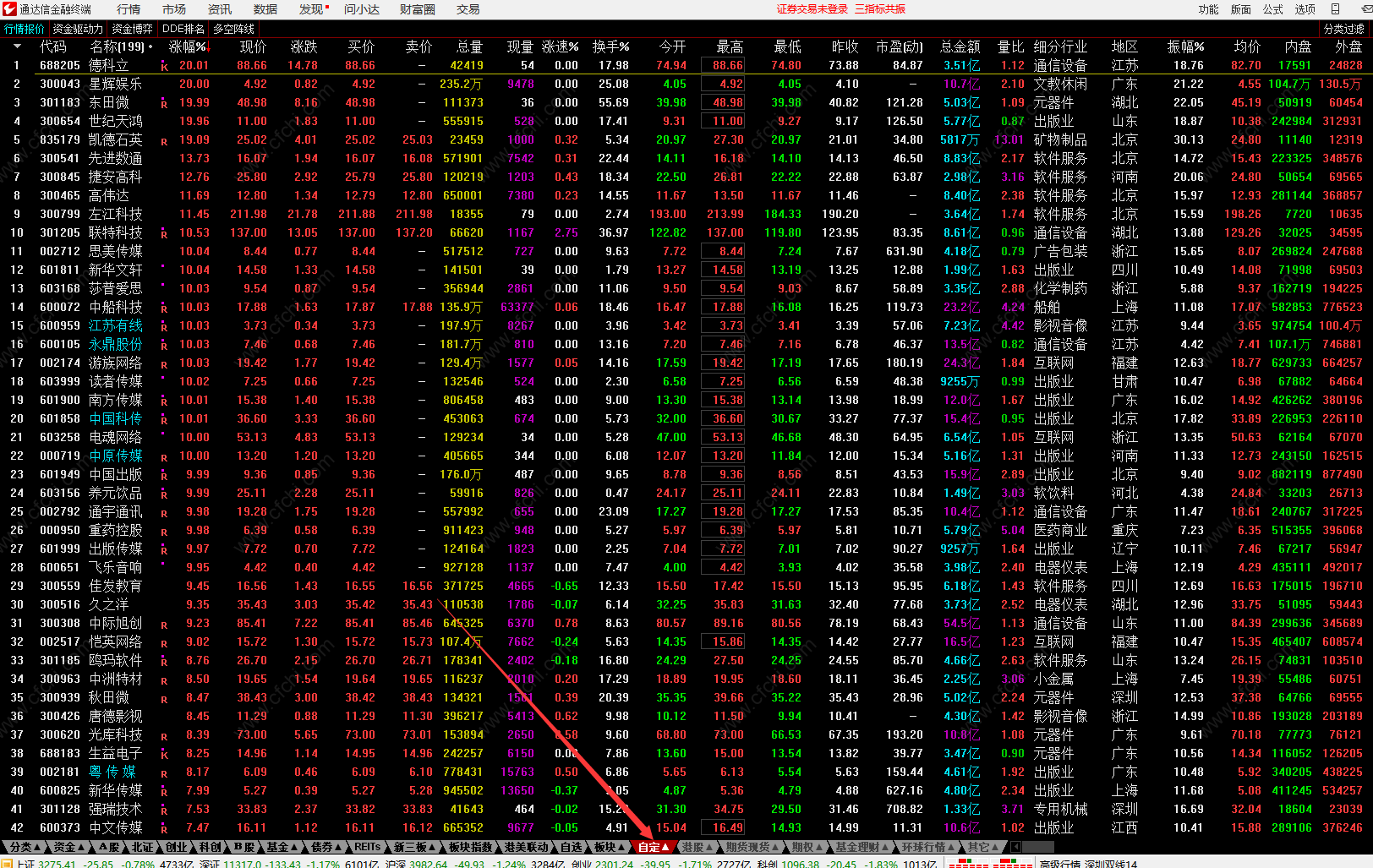 最后,在自定这里,找到自己创建的板块,点击进去,就可以看到选股结果在这个板块中了,就相当于一个三指标共振的多头股池。