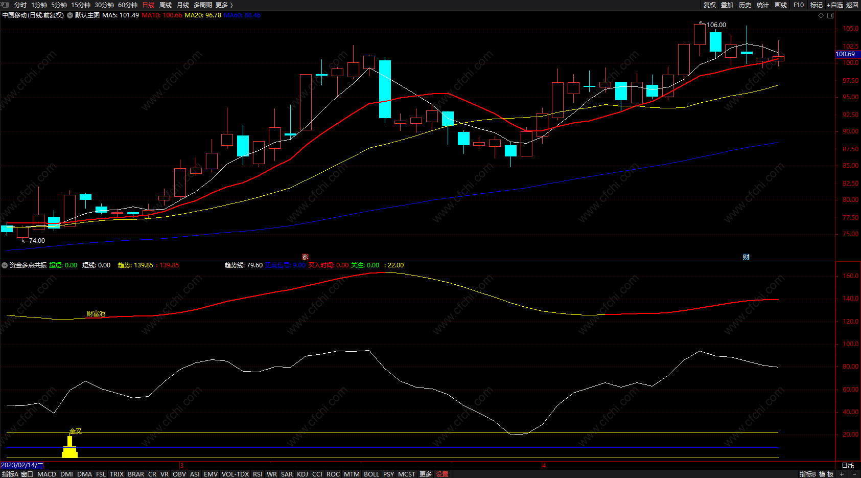 资金多点共振指标公式 通达信金叉买入提示公式 副图 源码