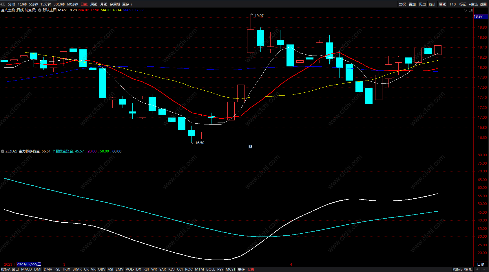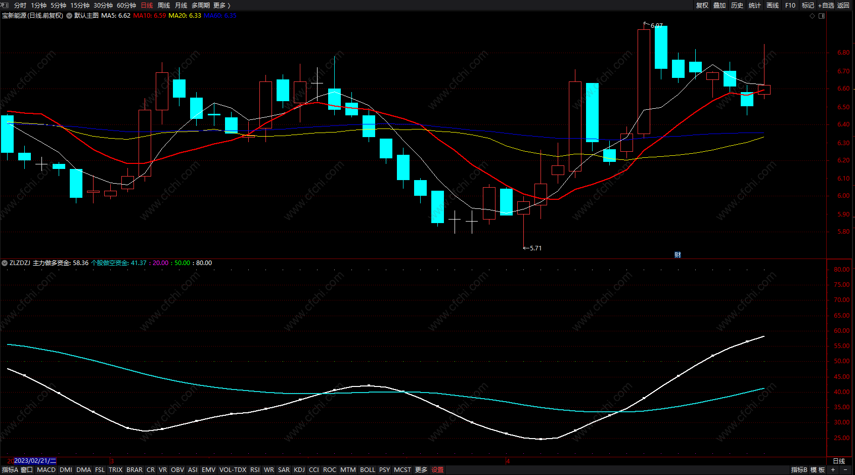 主力做多资金:EMA(B,5),LINETHICK2,COLORWHITE;
