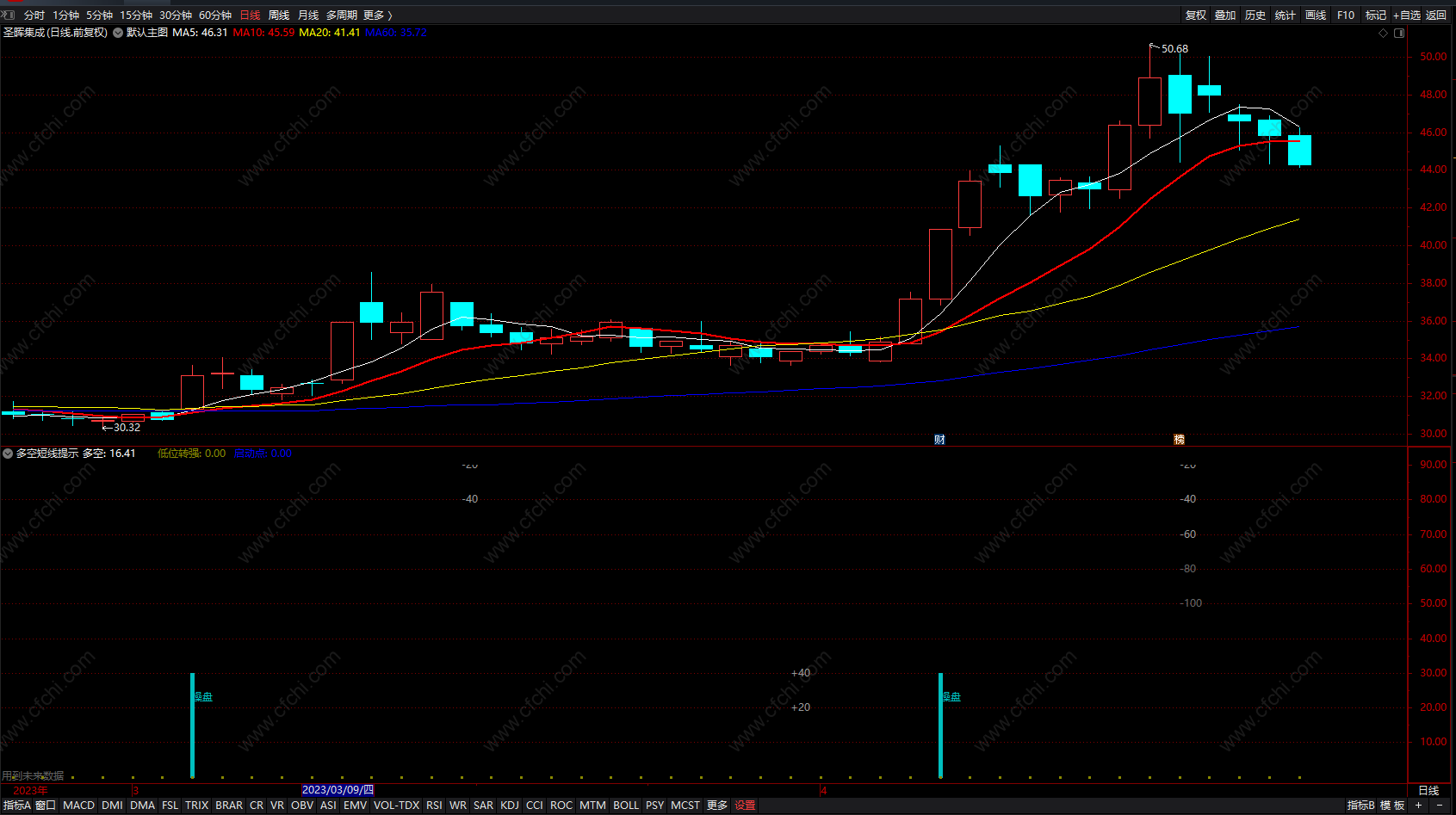 低位转强:IF(CROSS(AA5X,20),45,0),STICK,COLOR008888,LINETHICK4;
