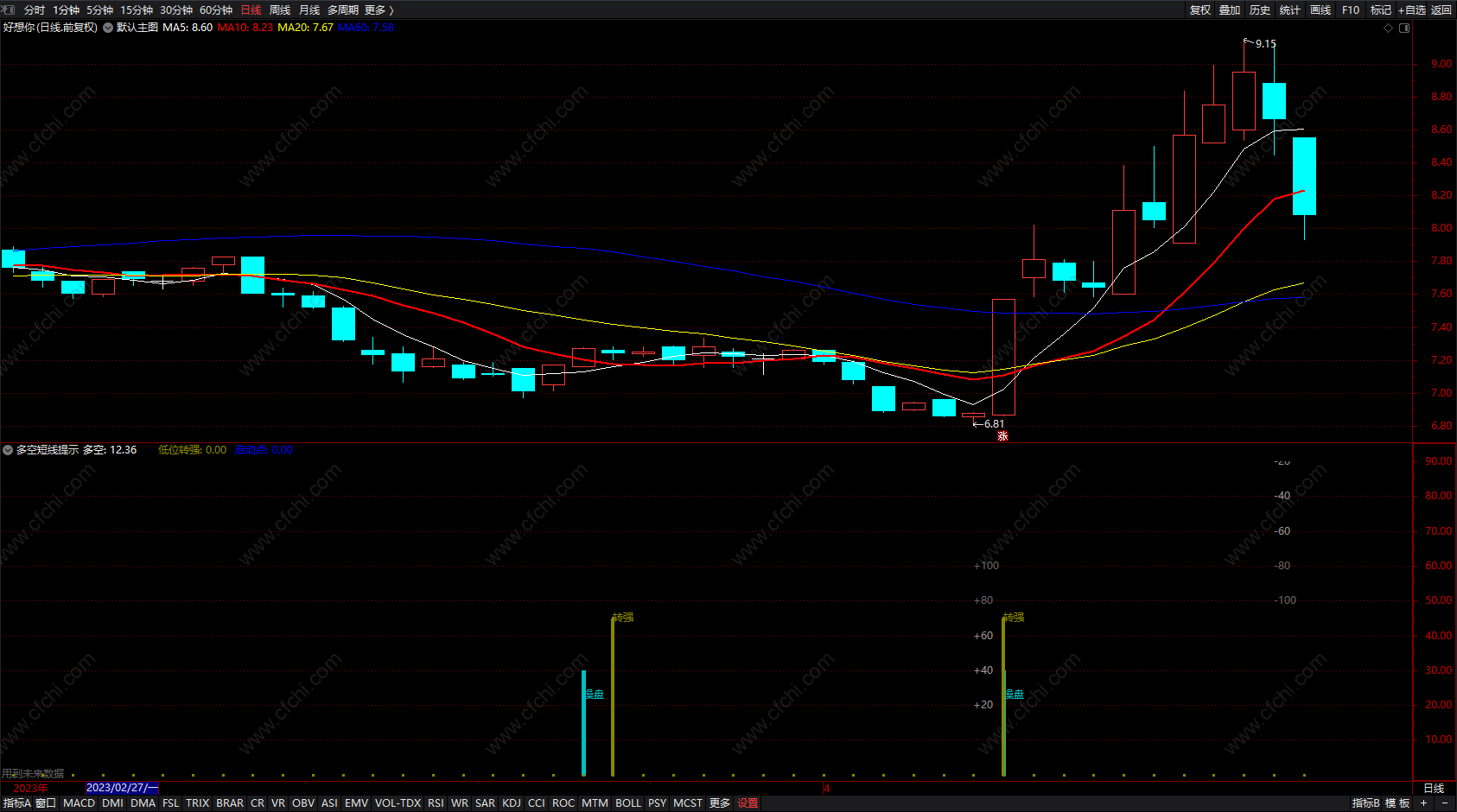 一目了然多空短线提示 通达信买卖操盘指标公式 副图 源码