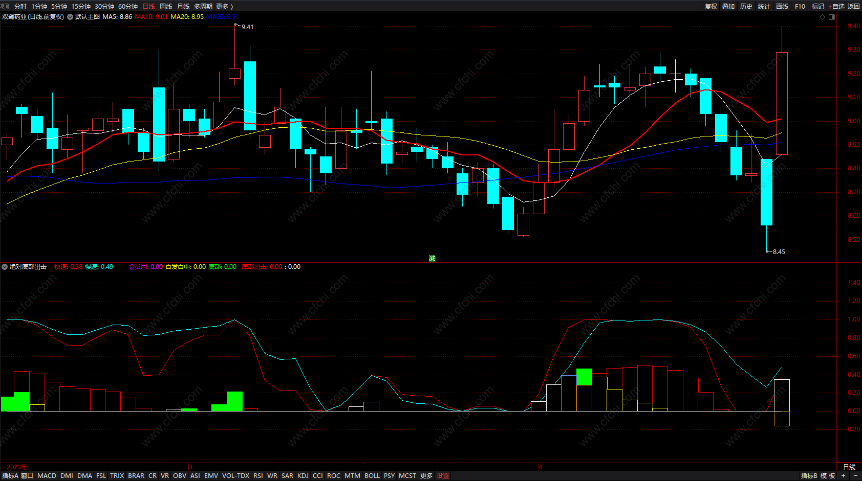 慢速:MA((VAR1A-VAR6A)/VAR7A,2),COLORCYAN;