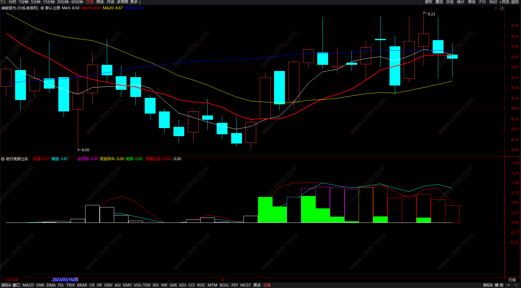 短线操作区:STICKLINE(Z2,10*C2,0,4,0*C2 ),COLORGREEN;
