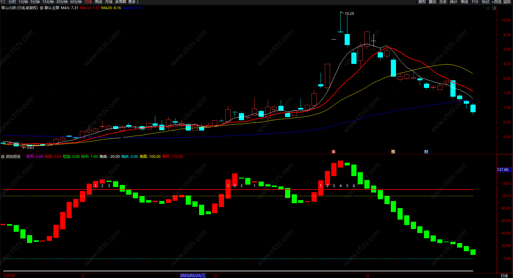 2、短卖:短线卖点。当波段由红变绿时就是短线卖点,此时可以考虑卖出。