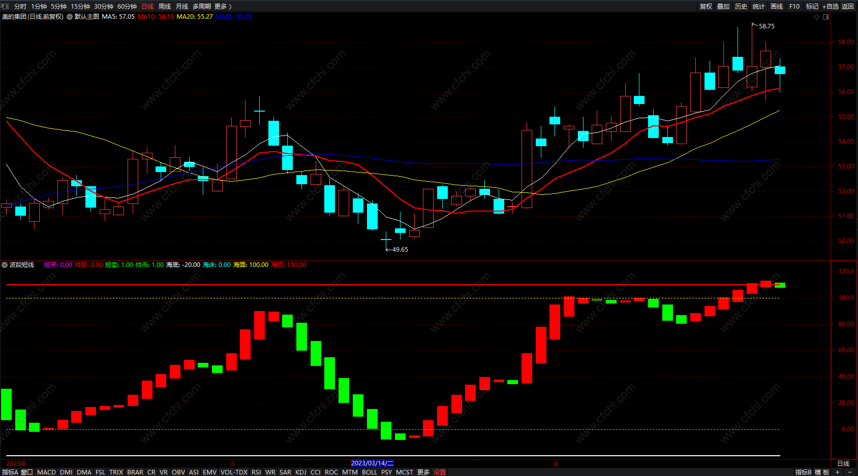1、短买:短线买点。当波段由绿变红时就是短线买点,此时可以考虑买入。