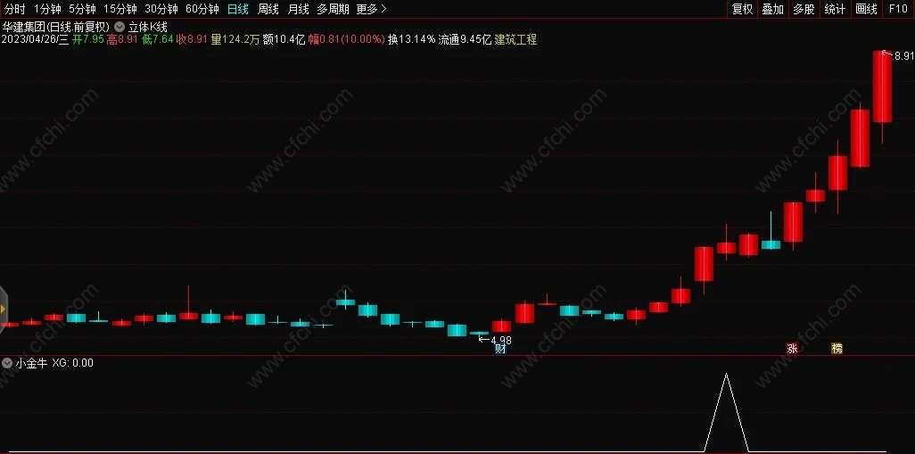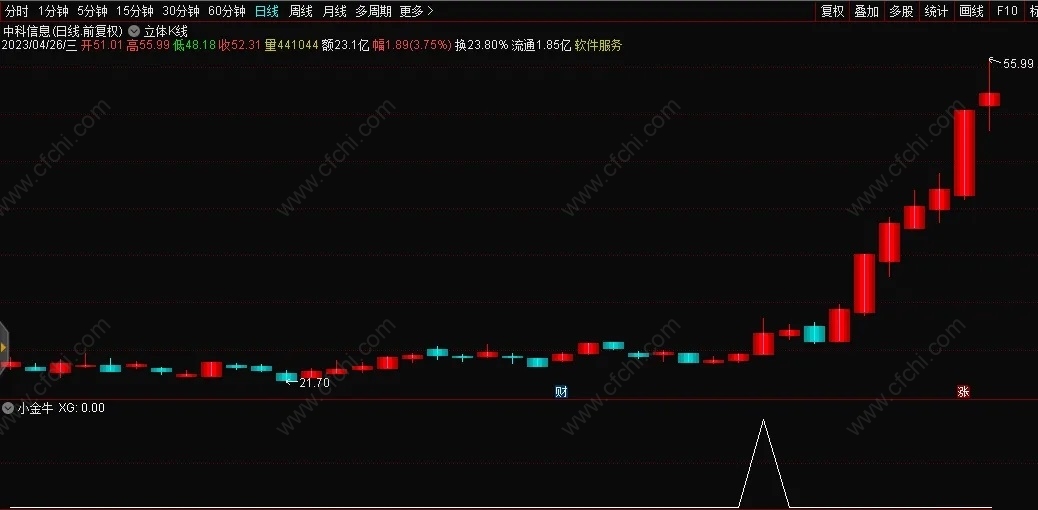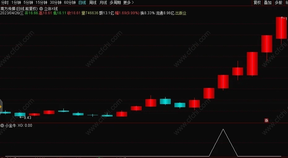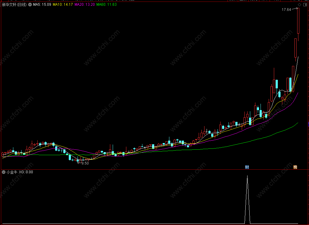 (通达信《小金牛》副图选股指标,五一抱头小金牛 中科信息 唐德影视 南方传媒 中国传媒)