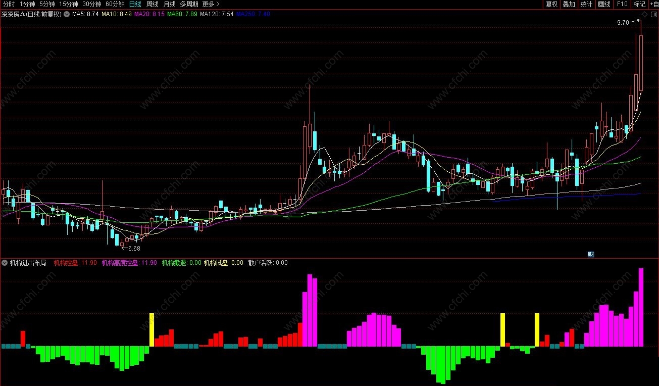 (【机构进出布局】通达信机构进出布局副图指标,可以看到资金量能进出状态,源码分享)