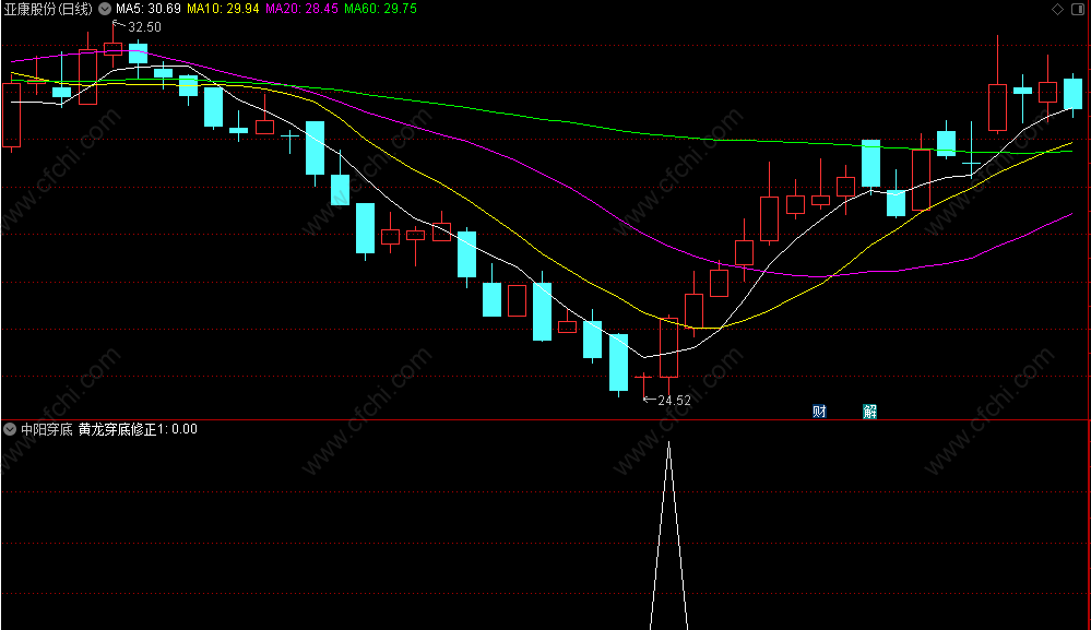 (龙头密码之中阳穿底 副图 选股 修正版)