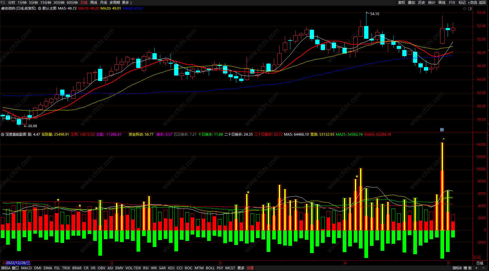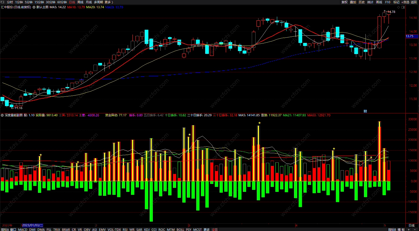 二十日换手:SUM(换手,20),COLORFFFFFF;