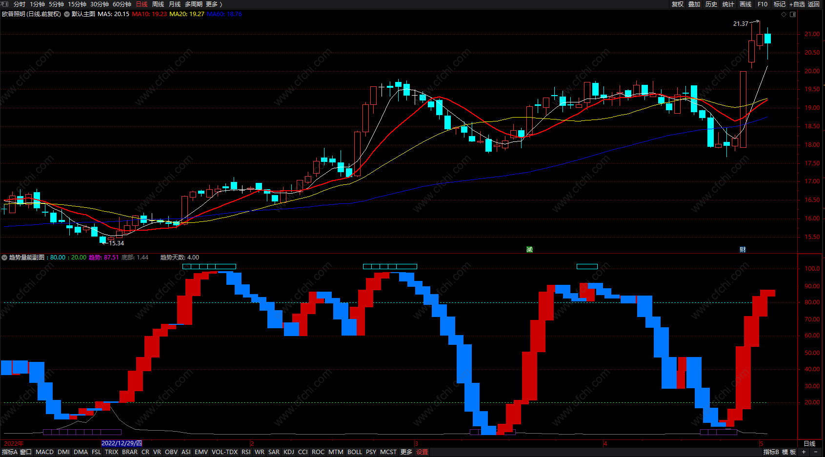 (趋势量能指标 通达信短线波段逃顶副图指标 无未来 源码 )