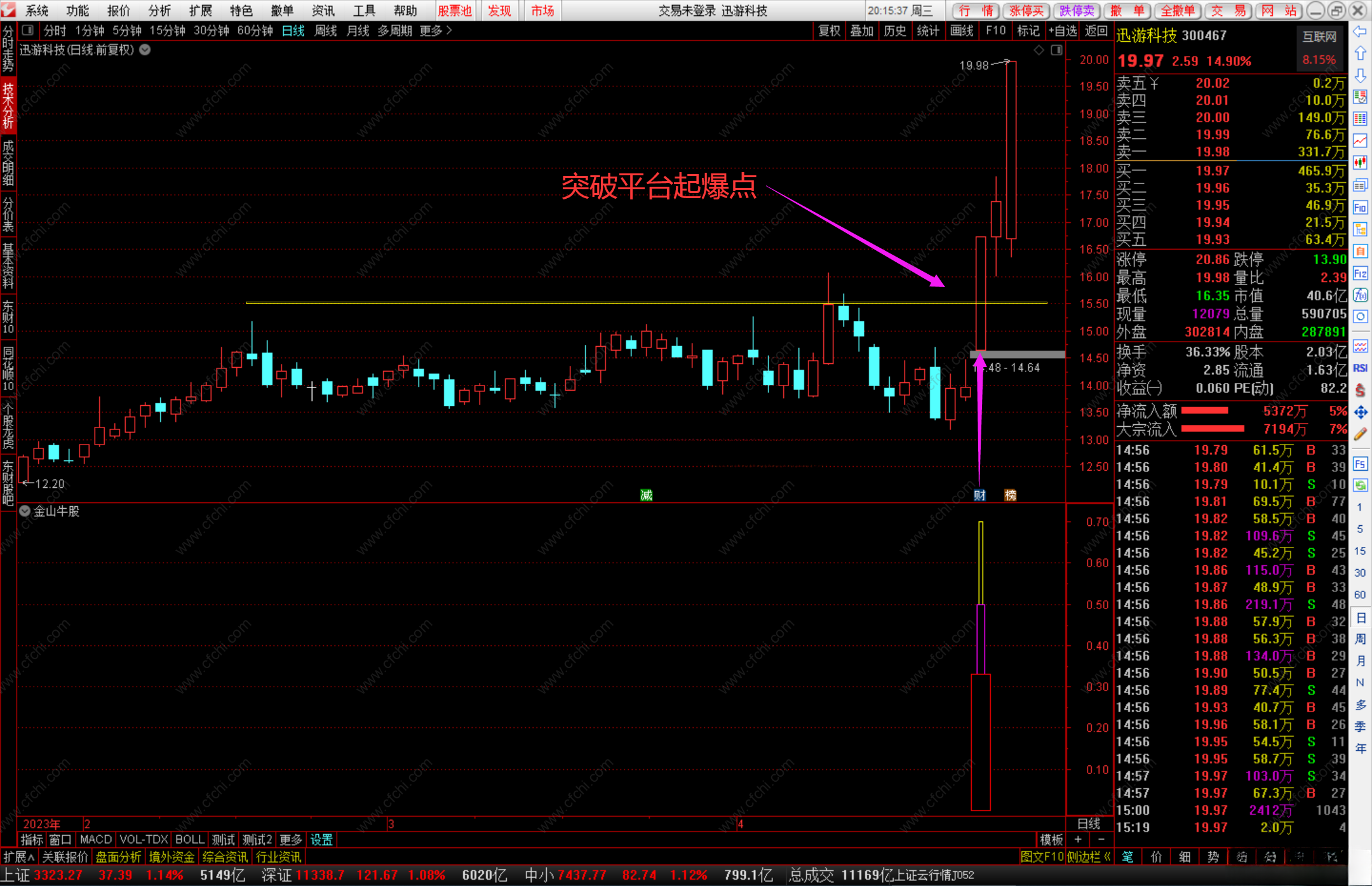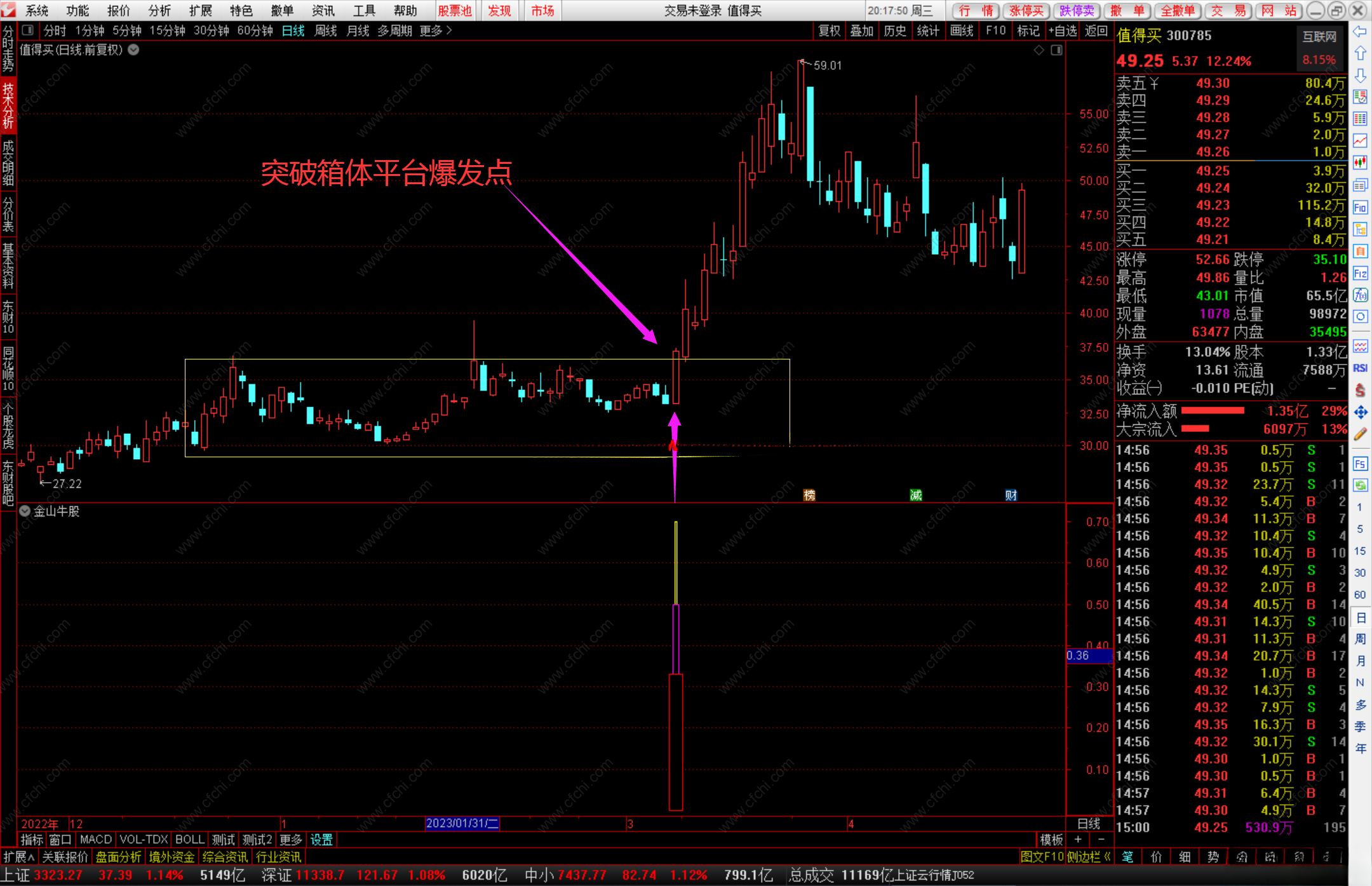 (【金山牛股】副图选股公式 专抓牛股突破箱体平台爆发点 百发百中 源码指标文件分享)