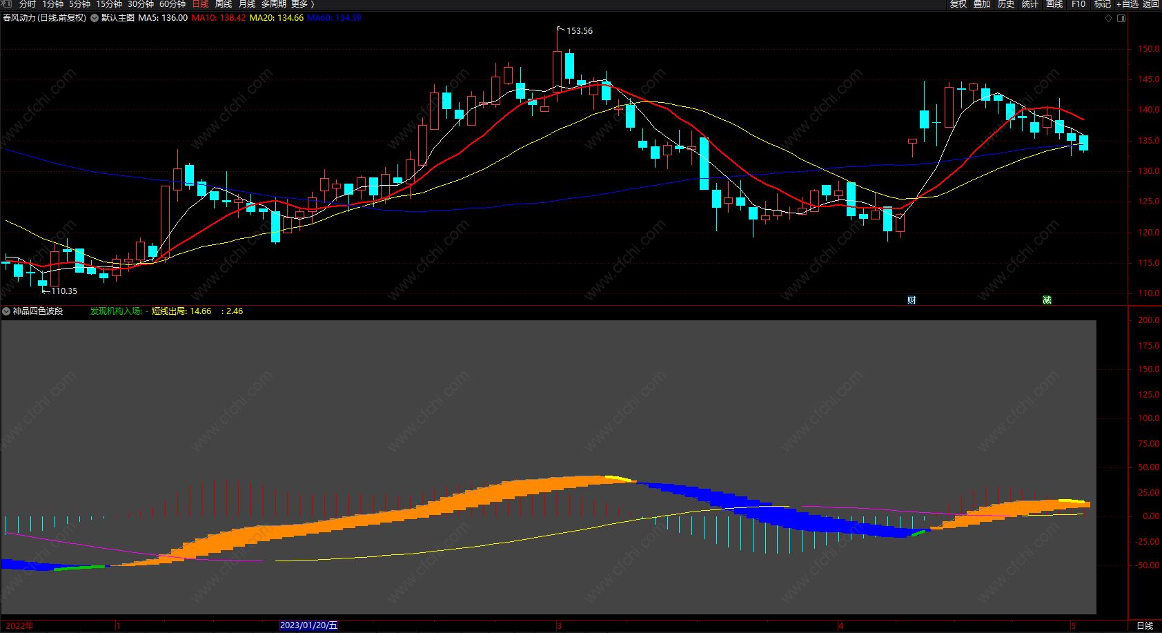 DRAWTEXT(C=C AND CURRBARSCOUNT=150,180,'操作:蓝转绿试买;见橙加仓;维持橙持股'),COLOR008987;