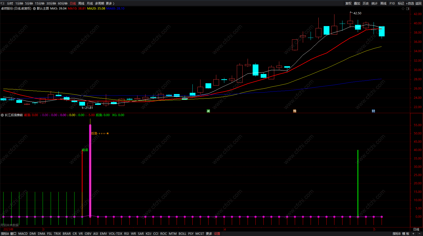 IF(REF(前浪,1)=40 ,55,0),STICK,COLORDD00DD,LINETHICK6;