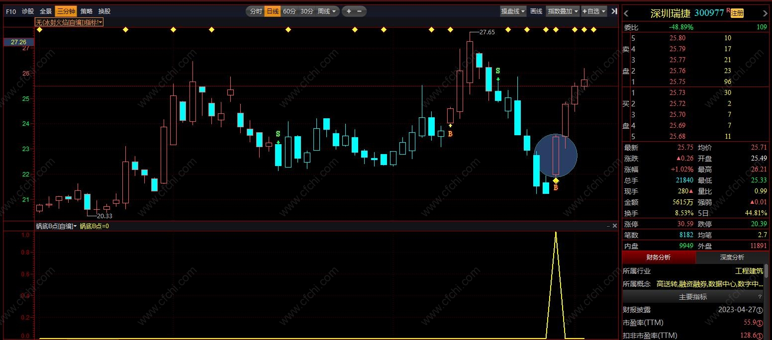 出信号既是锅底低点又是B点买点,B点买入,出S点之前盈利预期可提前止盈,如果还未盈利就出S点,止损或减仓观望,操作简单,小赔大赚,胜算概率大。