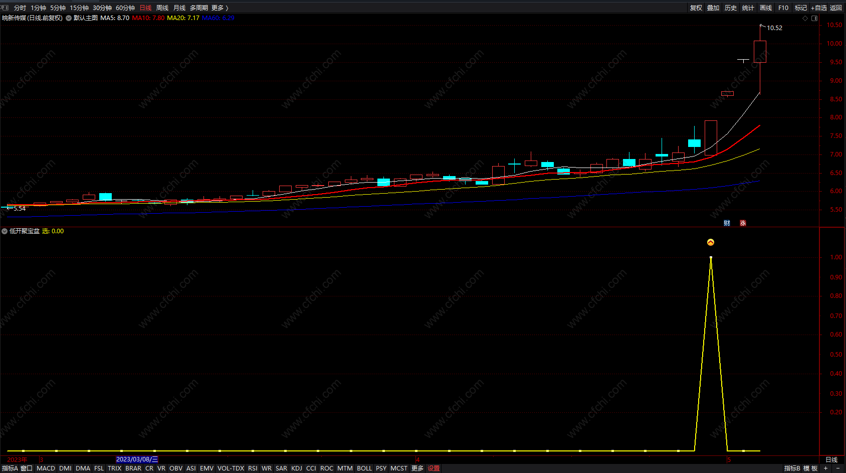 当日低开,指标出现后买入,次日不涨停则高点卖出。