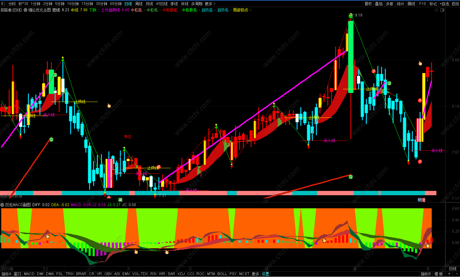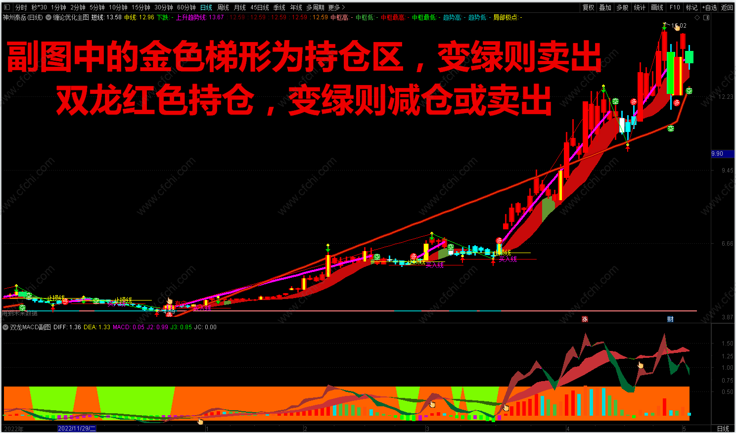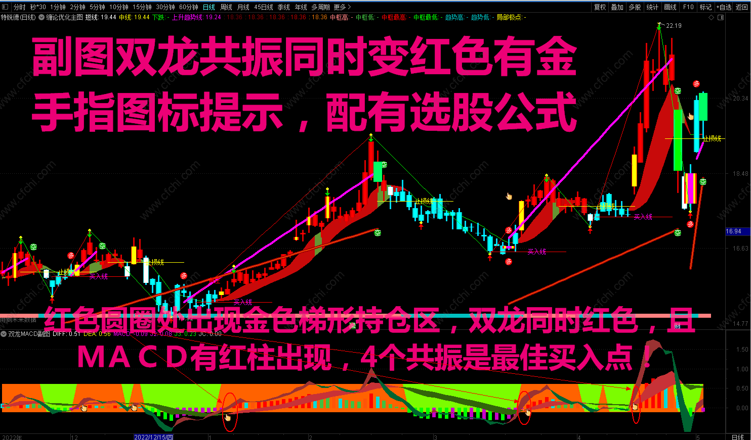 双龙MACD副图+2个选股公式,有2条双龙趋势彩带和一个持仓梯形——适合上班簇和散户使用,无未来函数,信号不漂移!永久版,无时间限制 。