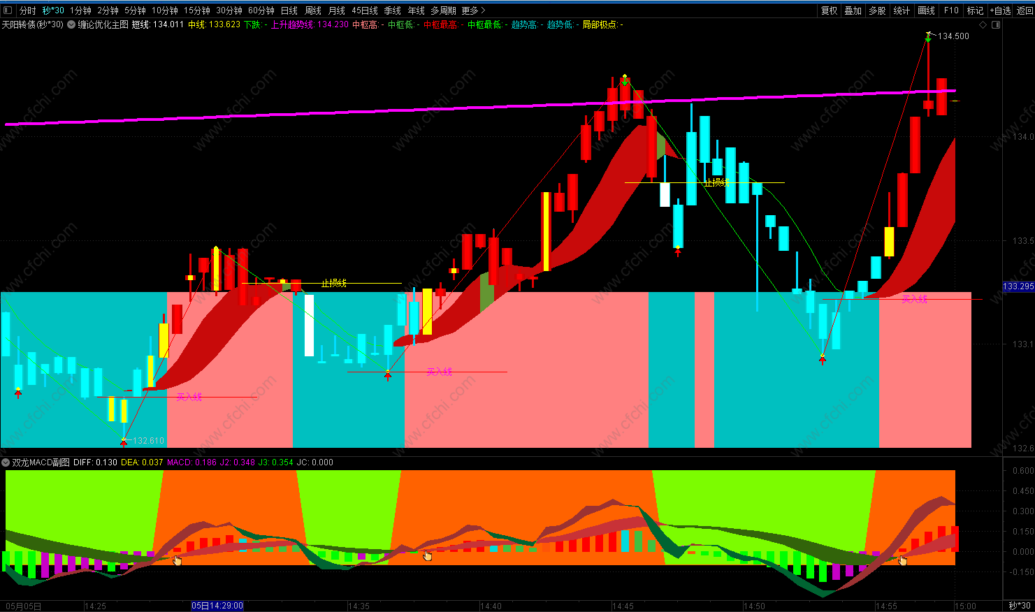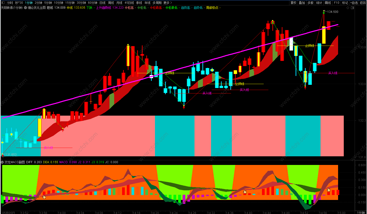 例图中关键指标信号我用圆圈,方框,箭头或文字标明用法,更加直观容易理解。老师们直接看图说话:(将图放大后看更加清楚)