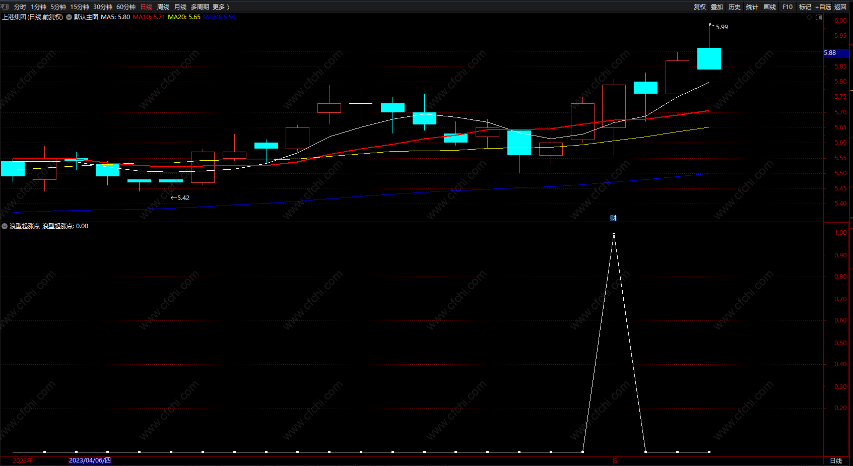 适合目前行情波段操作的【浪型起涨点】选股指标