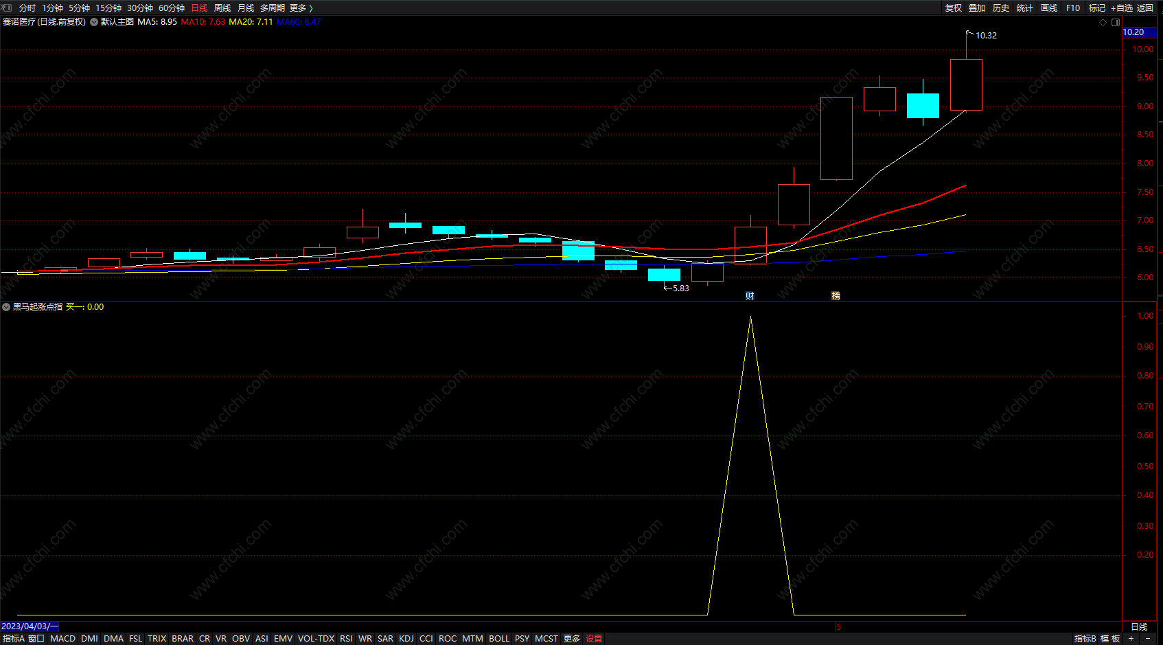通达信黑马起涨点选股指标公式 趋势追涨买点 副图 无未来 源码