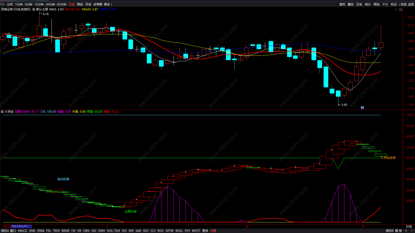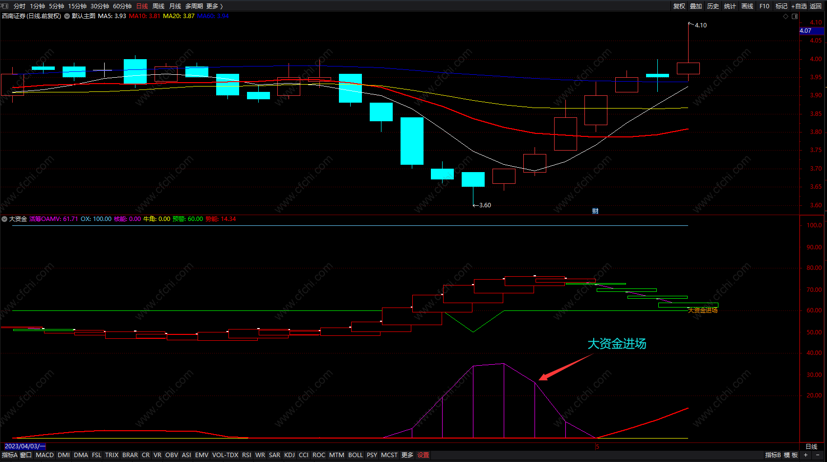 超级资金线选股指标 通达信资金进场副图指标公式 无未来 源码