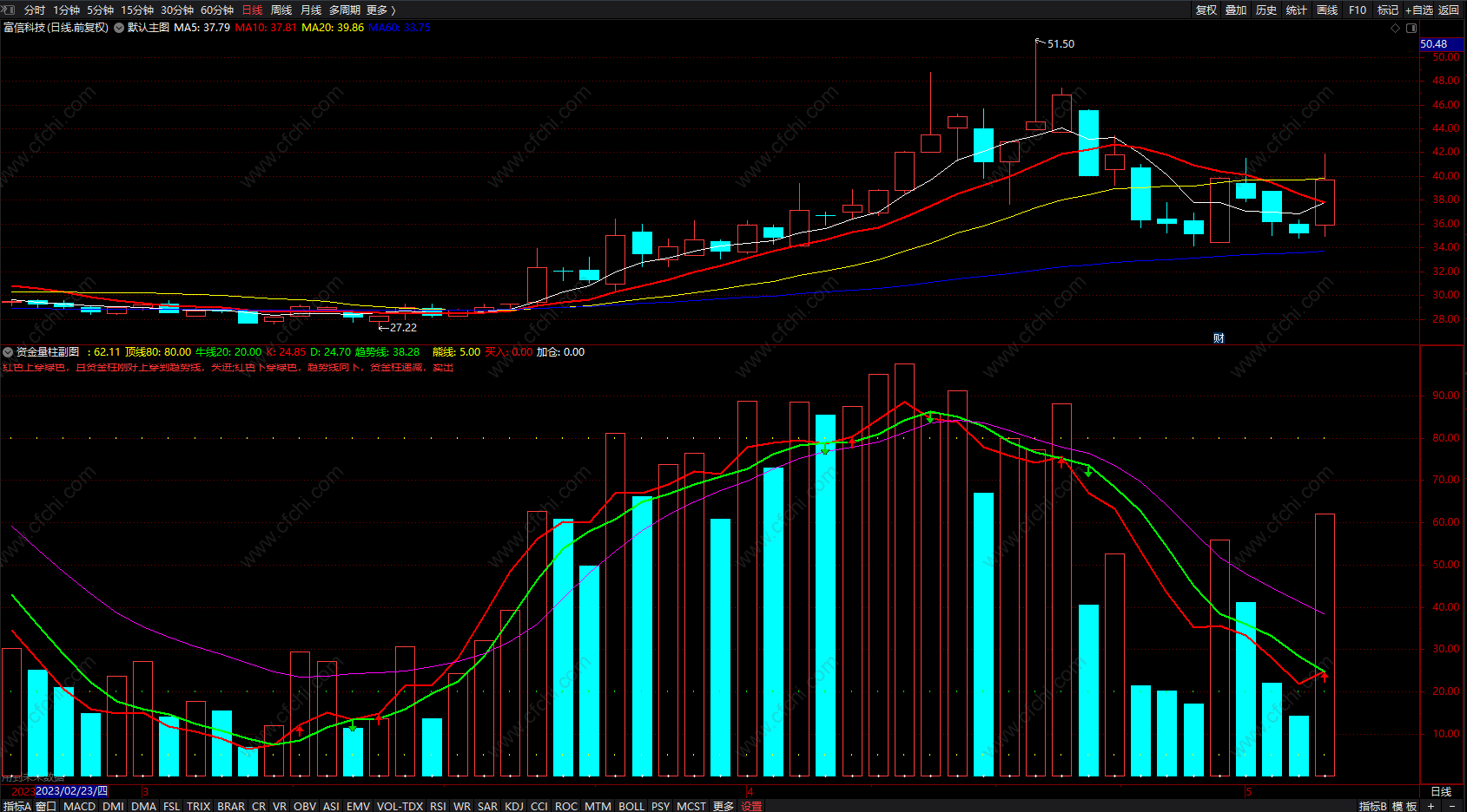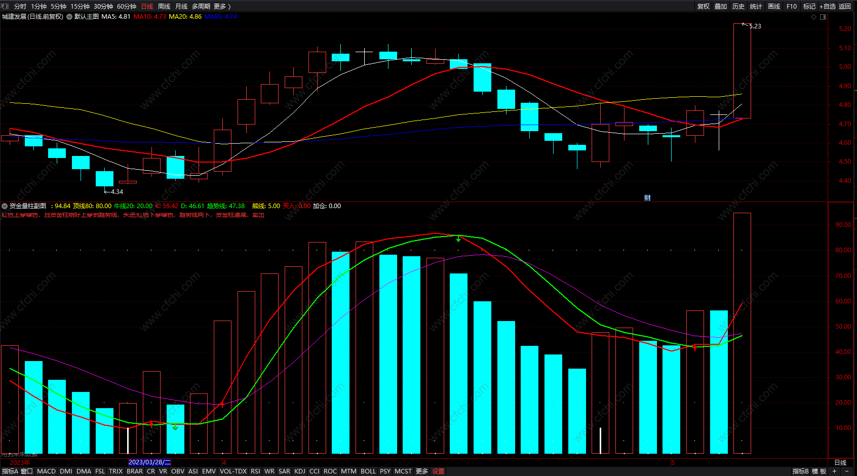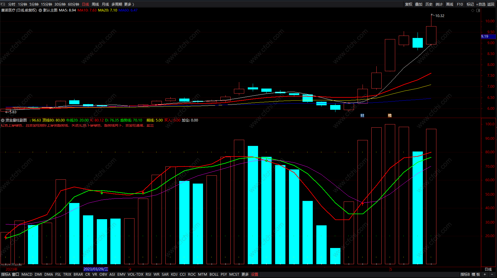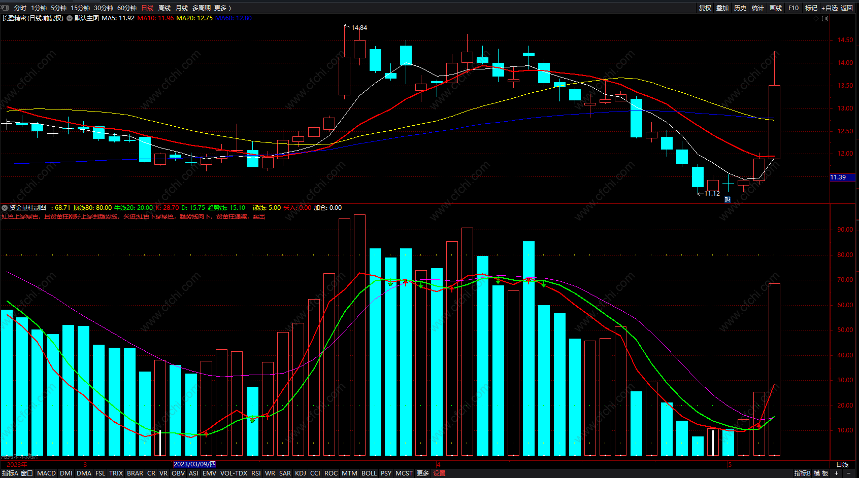(资金量柱提示 通达信短线趋势箭头指标公式 副图 无未来 源码 )