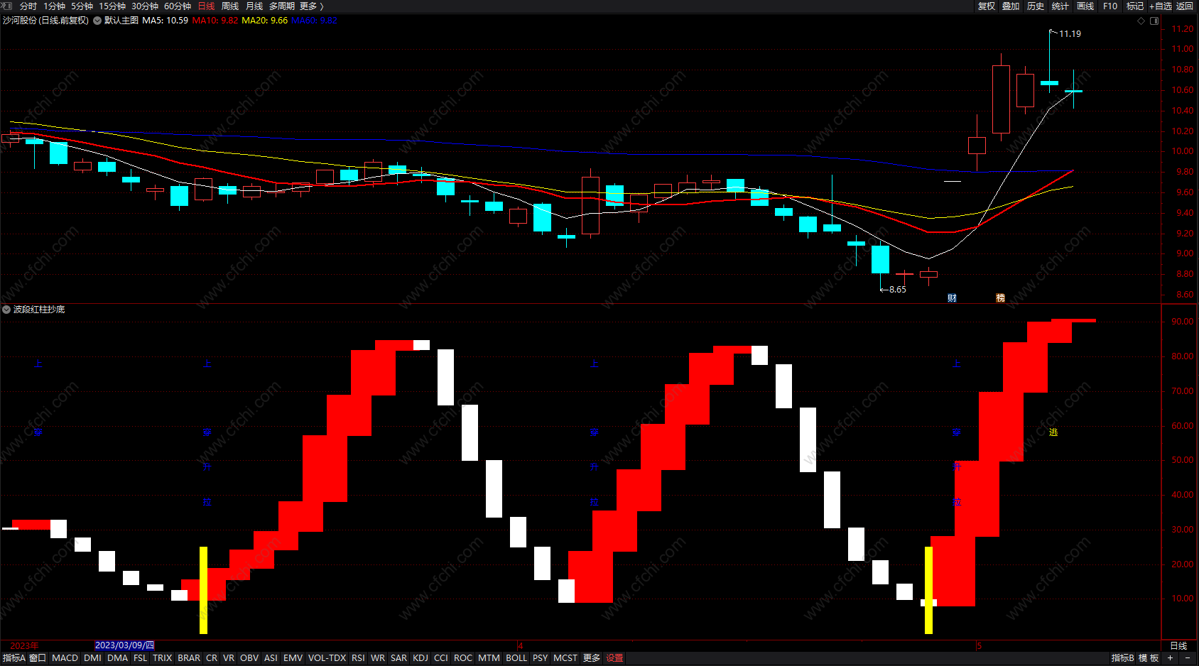 (上穿拉升 通达信短线波段红柱抄底提示指标公式 源码 副图 )