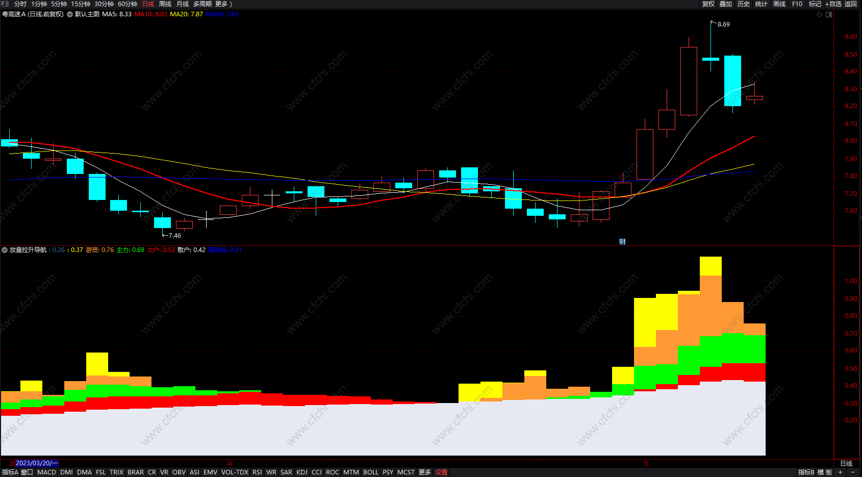 (放量拉升导航指标 通达信财富阶梯指标公式 副图 源码 )