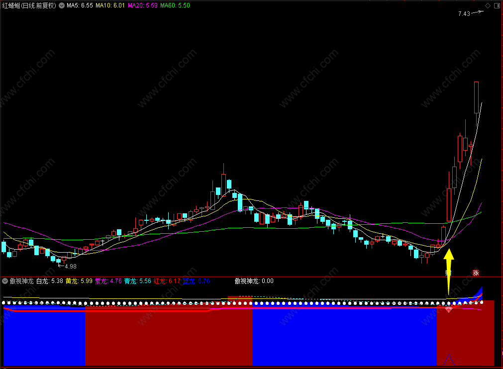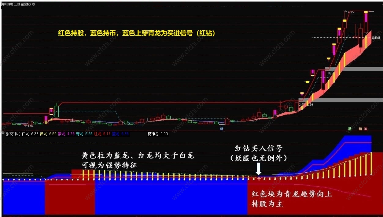 (【傲视神龙】通达信傲视神龙副图指标,红色持股,蓝色持币,蓝色上穿青龙为买进信号!)