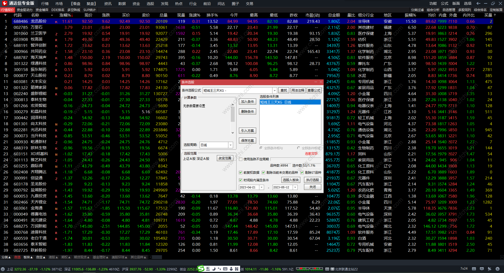 附件包含条件选股+副图指标源码!