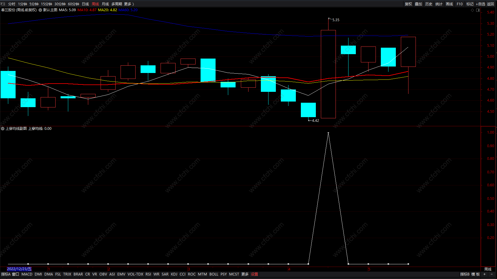 上穿均线选股指标 通达信逢低买入提示指标公式 副图 无未来 源码