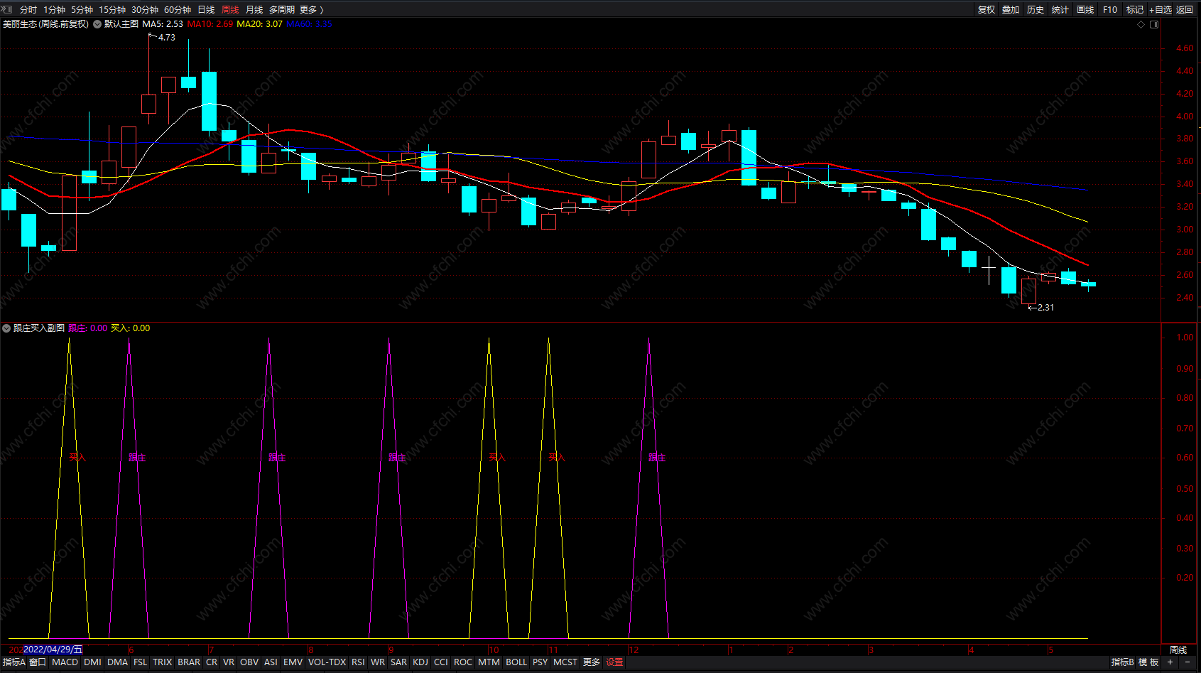 (通达信跟庄买入指标 源码 无未来 副图 )