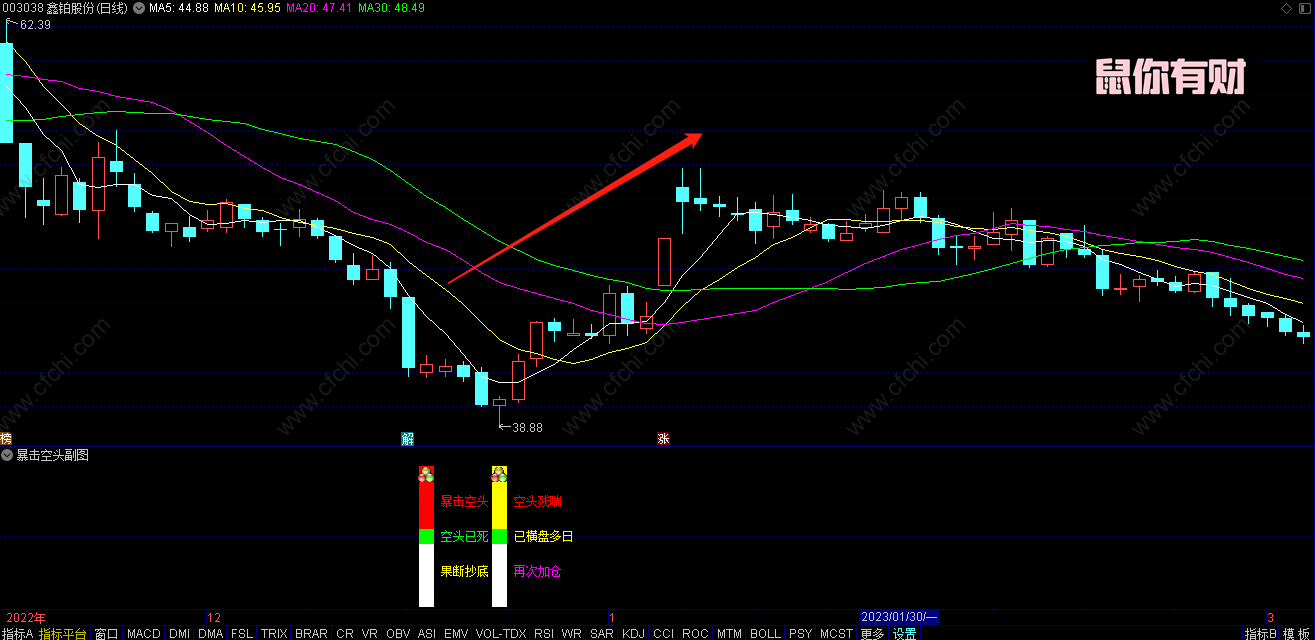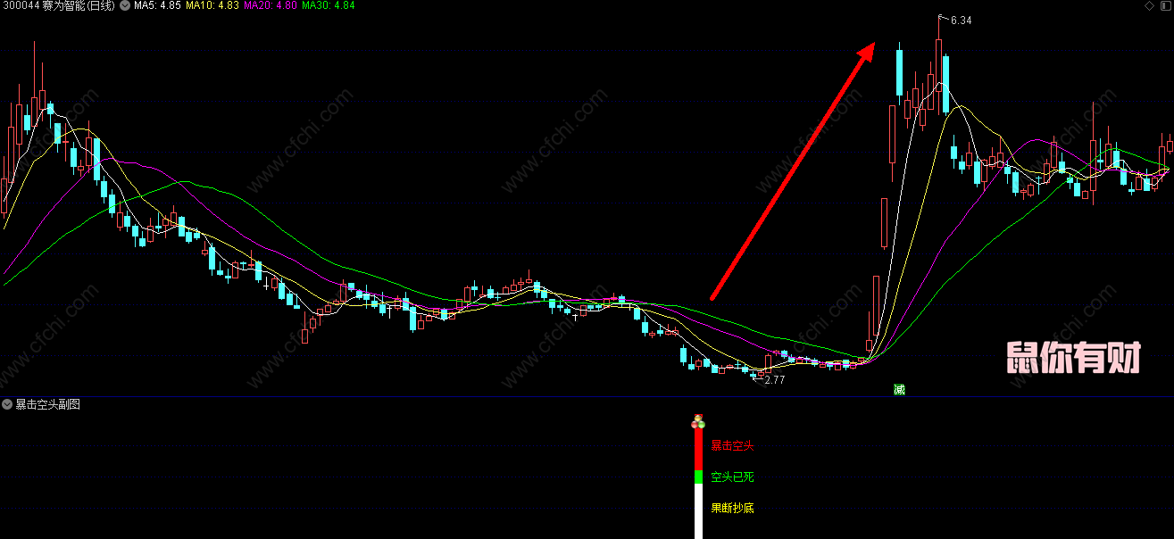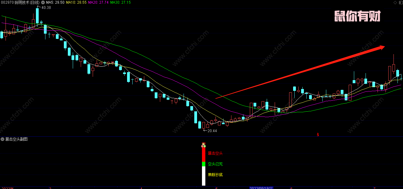 正所谓风水轮流转,在股票长期下跌的过程中,空头空头力量逐渐枯竭,再想大跌已经不可能,多头开始占领主阵地,这就是暴击空头指标,空头已死,果断抄底。中线胜率高达95%。