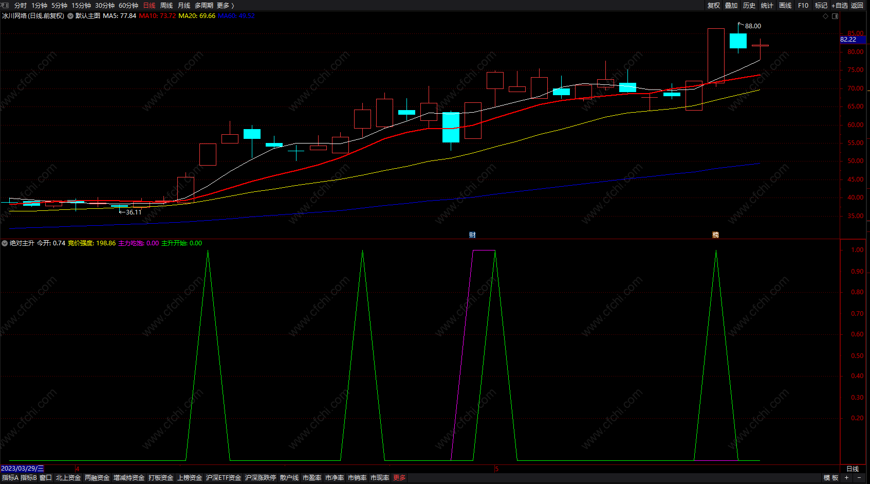 通达信妖股主升浪选股指标 预测主力拉升指标公式 副图 源码